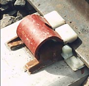 Дорога придерживается этой концепции в поиске лучших решений по рельсовым скреплениям для железобетонных шпал, рассматривая конструкции, предлагаемые такими компаниями, как Pandrol USA и AirBoss Railway Products. BNSF, так же как Union Pacific (UP), проводила эксплуатационные испытания скреплений типов SAFELOK III компании Pandrol (рис. 1) и Universal Fastening System компании AirBoss. Скрепления обоих типов состоят из подрельсовых подкладок, клемм, отдельных боковых упоров и корневых изоляторов, причем все эти компоненты в предварительно собранном виде поставляются вместе с железобетонными шпалами, на которые они устанавливаются в заводских условиях. Конструкция скреплений обеспечивает доставку шпал на место укладки без риска утраты или повреждения какого-либо компонента скрепления.