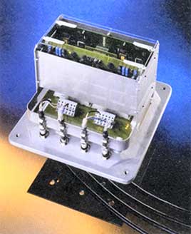 Платы всех блоков размещены в каркасе вертикально и зафиксированы на основной плате при помощи двух разъемов. За счет этого конструкция приобретает необходимую жесткость. На основной плате имеются пружинные натяжные клеммы для соединения с сигнальным кабелем и рельсовыми датчиками, штекер для подключения диагностического прибора, съемная защита от перенапряжений и двухканальный блок переключателей для установки адреса пункта счета осей (рис. 2).