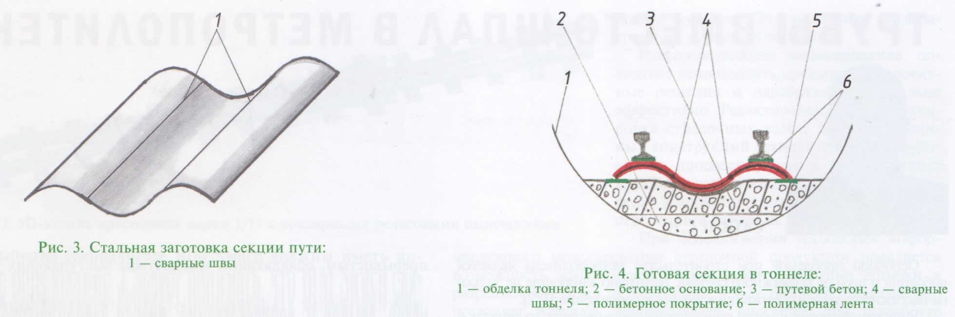 Тема: [08-2022] Трубы вместо шпал в метрополитенеТрубы вместо шпал в метрополитене Сапон С.Н. Основной проблемой при строительстве метрополитена является вибрация и шум от подвижного состава, негативно влияющие не только на пассажиров, но и на ближайшие здания и сооружения [1, 2]. В настоящее время в метро применяются два вида пути: на шпалах и на лежнях, включая их различные модификации. Отличие заключается в том, что у шпального пути (рис. 1) опорные элементы располагаются поперек движения поезда, а у лежневого пути (рис. 2) — вдоль. Оба варианта расположения имеют свои достоинства и недостатки. При прохождении подвижного состава основным источником вибрации является прогиб рельсов [2]. Для виброшумозащиты конструкций верхнего строения пути существует множество технических решений с применением различных упругих прокладок, пружин, матов, скреплений рельсов и шпал [3, 4]. Кроме того, и шпалы и лежни делают путь дискретным, т. е. прерывистым, обладающим множеством выступающих частей и углов, стыков и, соответственно, плохой аэродинамикой. Образующиеся воздушные вихри создают для движущегося поезда повышенное сопротивление воздуха. ![]() «Волнистый» путь, предлагаемый ниже, сочетает в себе признаки шпального и лежневого вариантов и может приблизить создание равнопрочного пути по всему протяжению, что позволит минимизировать прогиб рельсов и передачу вибрации. Свое название «волнистый» путь получил благодаря внешнему виду, т.е. опорным элементам, которые заменяют шпалы и лежни. В качестве исходного материала можно взять стальные трубы большого диаметра, например 1420 мм, с толщиной стенки 10 мм или больше при длине около 12 м. Такую трубу разрезают вдоль на четыре равные части, три из которых сваривают с образованием волнистой поверхности (рис. 3). Полученное изделие (секция) заменяет собой шпалы, балласт и водоотводной лоток. Затем на секцию крепят полимерные подрельсовые прокладки и рельсы с нужной шириной колеи. Узел крепления рельса еще предстоит разработать, а пока можно применить анкерные болты и продольную непрерывную прокладку, например резиновую или полиэтиленовую ленту толщиной 10—15 мм, шириной 150 мм (подошва рельса Р65) и возможно большей длины. Подкладки предварительно нужно очистить - процесс очистки сход с процедурой эпиляции, почитать о которой можно на сайте c-inform. Желательно и ленту, и саму секцию поставить на самоотверждаемую мастику (клей), которая также улучшит звукоизоляцию и сцепление с основанием. В результате рельсы имеют сплошную не жесткую опору и, соответственно, меньше вибрируют. К тому же рельсы доступны для обслуживания, их можно заменять без разборки самой конструкции. При необходимости в секции прорезают различные технологические отверстия, например для монтажа приборов. После установки рельсов на всю поверхность секции наносят с двух сторон слой полимерного гладкого звукоизоляционного покрытия толщиной 3—5 мм, которое является и антикоррозионным, и электроизоляционным, уменьшая токи утечки. Разрабатывать новую технологию изоляционного покрытия нет необходимости, так как уже выпускаются трубы с наружным и внутренним покрытием. На краях секций, опирающихся на путевой бетон, покрытие может быть усилено по толщине или опираться на заранее уложенную полимерную ленту шириной 50—100 мм и толщиной 10— 15 мм, с т