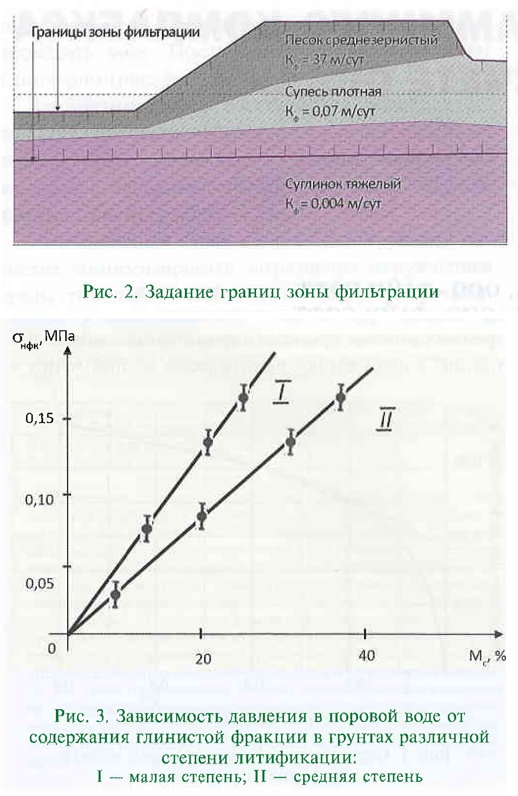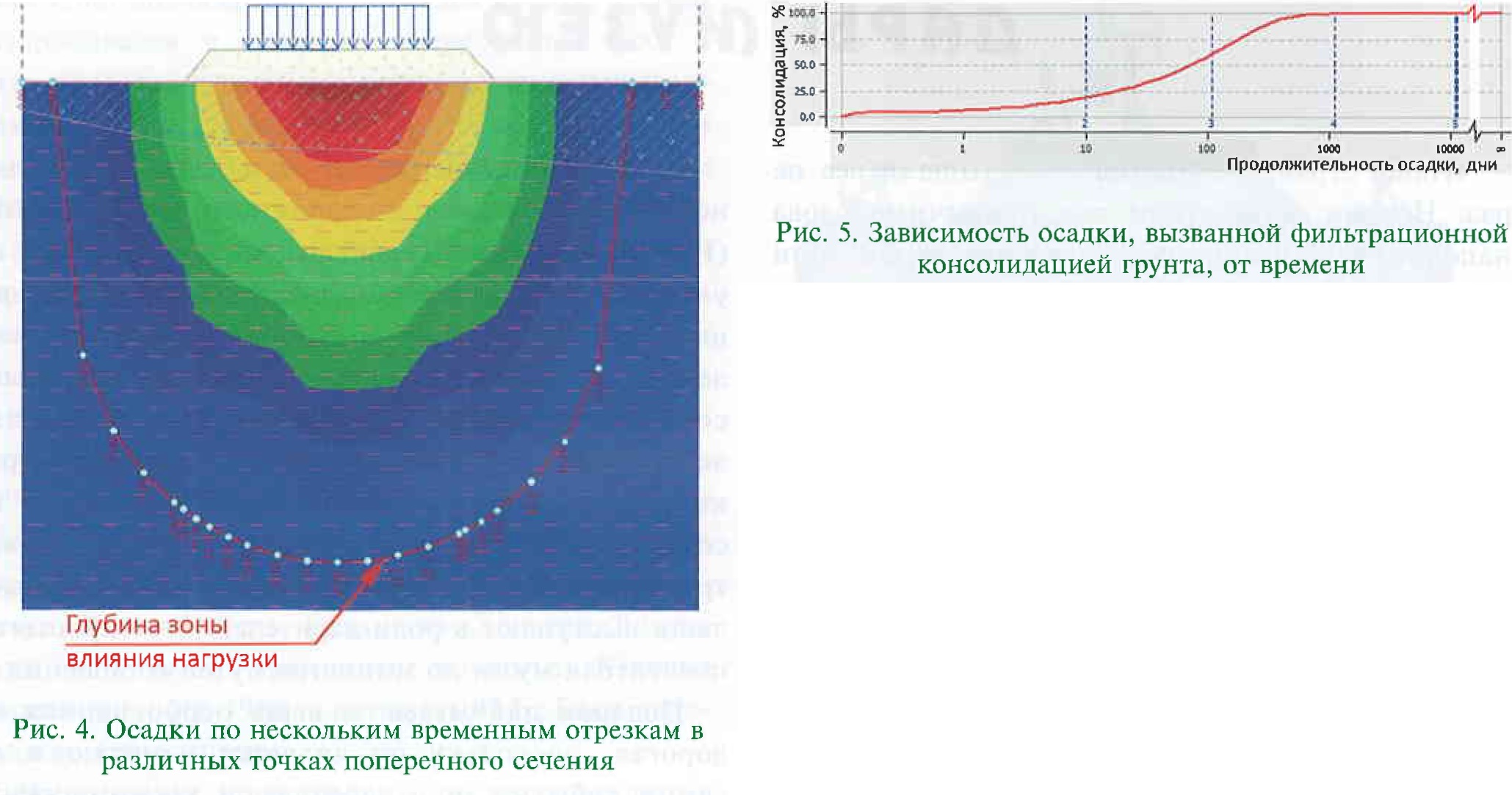 Тема: [01-2020] Возможности программного комплекса GEO5 при расчете осадкиВозможности программного комплекса GEO5 при расчете осадки ЯУШЕВА С.В., ООО «ФАЙН СОФТ», канд. тех. наук, ДЯТЛОВА К.С., ООО «ФАЙН СОФТ», специалист Программный комплекс GEO5 представлен на российском рынке с 2010 г. и широко используется на сети железных дорог. В настоящее время программа стала достаточно популярной в среде геотехников, в том числе среди уверенных пользователей других геотехнических программ. GEO5 — это комплекс программ, каждая из которых может быть использована как самостоятельный и независимый модуль, имеет доступный интерфейс, что позволяет достаточно быстро новому пользователю освоить нужные опции и приступить к расчетам. Следует признать, что потенциал программы используется лишь отчасти, в то время как разработчики постоянно совершенствуют свой продукт, выявляя его новые возможности. ![]() Расчет вертикальных перемещений массива грунта под нагрузкой зависит от его деформационных характеристик. Причем эти характеристики могут отличаться в пределах выделенного инженерно-геологического элемента (ИГЭ). В частности, модуль деформации грунта всегда зависит от напряженного состояния, у одного и того же грунта при разных значениях нормальных напряжений модуль деформации будет отличаться. В большинстве случаев изыскатели в отчетах приводят график компрессионных испытаний, по которому можно отследить изменение относительной деформации грунта в зависимости от напряжений. К сожалению, эти данные не всегда используются в расчетах, чаще всего проектировщик принимает постоянное для отдельного ИГЭ значение модуля деформации Е (МПа), в то время как переменный модуль деформации более достоверно описывает поведение грунта под нагрузкой, а именно: Eoed = Да/Ае, где Eoed — одометрический модуль деформации грунта; Дет — заданный интервал напряжения; Де — изменение относительной деформации (рис. 1). GEO5 позволяет вводить в расчет модуль деформации и как постоянную величину, и как переменную по глубине, задав в программе график испытаний. Результаты будут значительно отличаться в зависимости от выбранного способа задания модуля деформации. Определение конечной осадки насыпи потребует задания границ сжимаемой толщи, а в случае водонасыщенных грунтов — учета фильтрации. Есть общие рекомендации СП 22.13330.2016 [1] относительно задания границ сжимаемой толщи: ц/р = 0,5ozg, где стгр — вертикальные напряжения в грунте на глубине z от внешней нагрузки; ozg — вертикальные напряжения в грунте на глубине z от собственного веса грунта; 0,5 — коэффициент, принимаемый в зависимости от относительной глубины. Если в основании залегают слабые грунты, коэффициент 0,5 снижают до 0,2. Программа позволяет при задании границ сжимаемой толщи ориентироваться на любую глубину, например на уровень, где происходит исчерпание структурной прочности грунта. Но этот логичный с точки зрения расчетов принцип ограничения сжимаемой толщи, к сожалению, практически не применим в силу сложности определения самого значения структурной прочности грунта. ![]() В случае когда в пределах предполагаемой сжимаемой толщи наблюдается слой с очень высоким значением Е, программа позволяет провести границу по горизонту этого слоя и присвоить ему свойства несжимаемого основания. В ряде случаев может потребовать