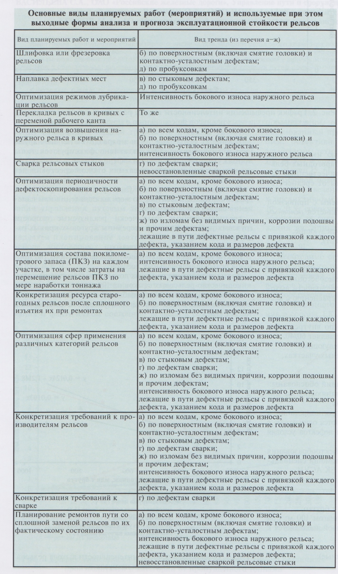 Тема: [12-2022] Ведение рельсового хозяйства на основе предиктивных методовВедение рельсового хозяйства на основе предиктивных методов ЕРМАКОВ В.М., ООО НПП «АпАТэК», управляющий директор, докт. техн, наук, ВАСИЛЬЕВА С.А., ОАО «Российские железные дороги», Управление пути и сооружений Центральной дирекции инфраструктуры, ведущий инженер, ЯНОВИЧ О.А., ООО НПП «АпАТэК», заместитель управляющего директора, ЕГОРОВ М.А., АО «Инжиниринговый центр железнодорожного транспорта», эксперт, канд. техн, наук Аннотация. Применение предиктивного анализа при ведении рельсового хозяйства позволит оптимизировать затраты на путевую инфраструктуру в целом. Целевой задачей анализа является формирование трендов интенсивностей выхода рельсов по основным типам (причинам образования дефектов) по мере наработки тоннажа на каждом единичном участке с последующим объединением единичных участков с одинаковыми параметрами в пределах перегонов и главных путей примыкающих станций. Используя тренды фактической интенсивности дефектообразования в рельсах и ее прогноз на каждом единичном участке, планируются профилактические работы или ремонты пути. Ключевые слова: предиктивный менеджмент, дефекты рельсов, эксплуатационная стойкость рельсов, прогнозное образование дефектов, ЕК АСУИ, условия эксплуатации, профилактические работы, пропущенный тоннаж. В современных условиях, когда высоки конкуренция между различными видами транспорта и темпы развития новых технологий и технических средств для обеспечения устойчивого функционирования железнодорожной отрасли, необходимо повышать эффективность управления. Одним из инструментов такого повышения является предиктивный менеджмент [I, 2]. Из подразделений ОАО «РЖД» путевой комплекс является наиболее фондоемким и затратным, поэтому оптимизация управления путевым хозяйством и расходов очень актуальна. Ключевым элементом предиктивного управления является планирование деятельности подразделений на основе достоверных прогнозов состояния технических средств, развития технологий, изменения конъюнктуры рынка и т. п. Состояние рельсов — основного элемента пути — в значительной степени определяет стратегию и тактику ведения путевого хозяйства, затраты, влияние на перевозочный процесс, уровень безопасности и др. [3, 4]. Достоверная информация о фактическом состоянии рельсов в режиме реального времени, об интенсивности дефектообразования и обоснованный прогноз их ресурса на любом участке является объективной необходимостью. Современные IT-технологии, технические средства и базы данных в составе ЕК АСУИ и других корпоративных АСУ позволяют решать эти задачи [5, 6]. Мировой опыт свидетельствует о том, что при переходе от системы ведения хозяйства по фактическому состоянию к предиктивным принципам обеспечивается снижение до 10—20 % совокупных затрат в течение жизненного цикла объектов за счет увеличения межремонтных сроков, снижения внезапных отказов, уменьшения аварийных запасов, непроизводительных потерь при текущем обслуживании [7—9]. Необходимо оптимизировать затраты на ведение рельсового и путевого хозяйства в целом на основе: достоверной информации о фактическом состоянии рельсов в режиме реального времени, об интенсивности дефектообразования; обоснованного прогноза их ресурса посредством со