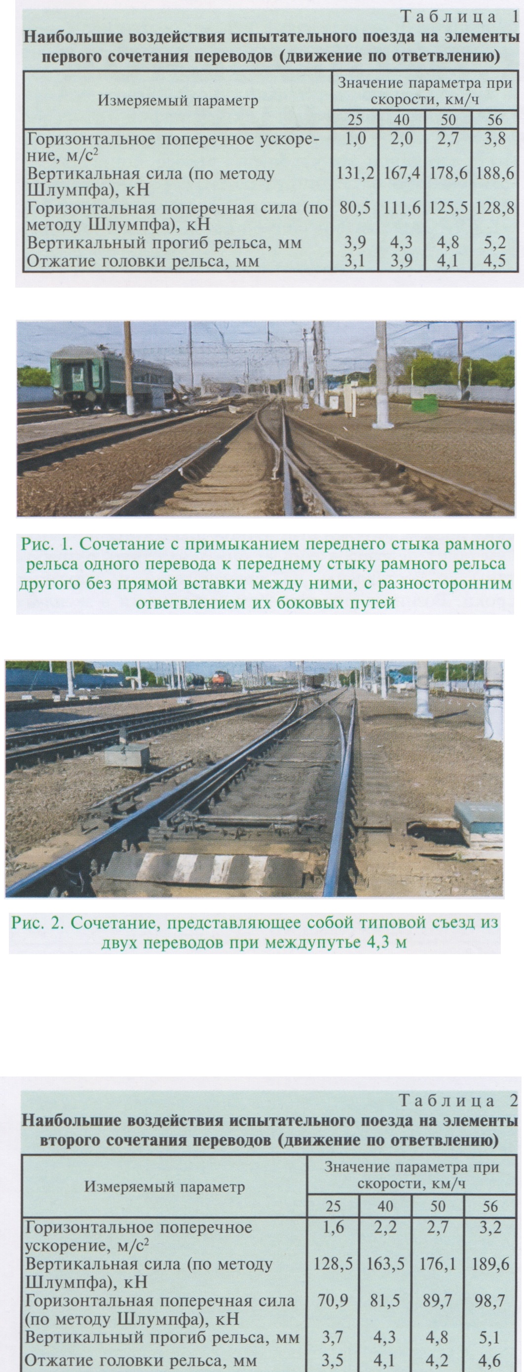 Тема: [12-2023] Важный резерв пропускной способности линийВажный резерв пропускной способности линий ГЛЮЗБЕРГ Б.Э., АО «Научно-исследовательский институт железнодорожного транспорта» (АО «ВНИИЖТ»), докт. техн, наук, ТИТАРЕНКО М.И., АО «ВНИИЖТ», канд. техн, наук Аннотация. Рассмотрен вариант использования резервов повышения скоростей движения по сочетаниям стрелочных переводов с целью увеличения пропускной способности горловин станций. Приведены результаты динамической и эксплуатационной работы стрелочных переводов при повышенных скоростях движения на примере горловины одной из станций Московской железной дороги. Ключевые слова: сочетания стрелочных переводов, требования к установлению скоростей, испытания, резервы повышения скоростей, практический опыт использования резервов. Пропускная способность линий определяется конструкциями и состоянием технических средств путевой инфраструктуры. Стрелочные переводы как наиболее сложные и важные элементы верхнего строения пути оказывают существенное влияние на параметры и возможности перевозочного процесса [1, 2]. В практике эксплуатационной работы скорости движения по стрелочным переводам часто ограничивают пропускную способность горловин станций, отрицательно влияя на эффективность организации движения поездов. Связано это с тем, что на сочетаниях (комбинациях) стрелочных переводов подвижной состав на коротких участках резко изменяет направление своего движения. При этом возникают дополнительные динамические и кинематические воздействия на путь, которые могут превышать допустимые величины. В связи с этим скорость подвижного состава при проследовании по горловинам станций приходится ограничивать. На сети дорог встречаются разнообразные сочетания стрелочных переводов, которые принципиально отличаются расположением стрелочных кривых смежных переводов — могут быть односторонними и разносторонними. Отсюда и скорости движения по ним могут отличаться, исходя из соблюдения динамико-кинематических критериев [3]. Практический анализ конструктивных особенностей стрелочных переводов, используемых в составе путевого развития станционной инфраструктуры, выявил основные направления возможностей увеличения скоростей движения, которые могут быть реализованы без реконструкции станций. Скорости могут быть повышены по конкретным сочетаниям стрелочных переводов с учетом фактической геометрии горловины [4]. Лабораторией «Стрелочное хозяйство» ВНИИЖТа разработан метод анализа и с его помощью рассмотрена кинематика проследования подвижного состава по различным видам сочетаний стрелочных переводов, имеющих место на сети ОАО «РЖД». Подверглись изучению типовые варианты размещения переводов, а также случаи нетиповой укладки с отклонениями от нормативов, вызванной стесненными условиями. При этом были выявлены резервы повышения скоростей — установлено, что скорости могут быть увеличены на 15 км/ч по ряду сочетаний стрелочных переводов, а отдельные виды сочетаний позволяют поднять скорость вплоть до конструкционных значений для одиночных переводов данного типа и марки. Соблюдение динамико-кинематических критериев при движении поездов по сочетаниям стрелочных переводов порождают обязательные ограничения [5] и требования, которые являются необходимыми, но не д