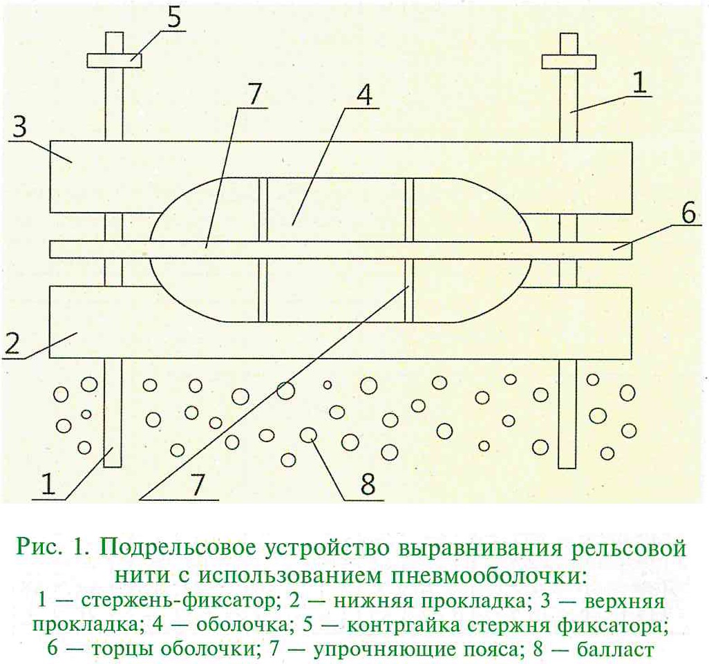 Тема: [01-2025] Напряженное состояние пути при использовании устройства для выравнивания рельсовой нитиНапряженное состояние пути при использовании устройства для выравнивания рельсовой нити СЫЧЁВ В.П., Российский университет транспорта (РУТ(МИИТ)), докт. техн, наук, СЫЧЁВА А.В., РУТ (МИИТ), канд. техн, наук, ОВЧИННИКОВ Д.В., Приволжский государственный университет путей сообщения, канд. техн, наук Аннотация. В статье обосновывается возможность применения подрельсового устройства для выравнивания в профиле рельсовой нити при оперативном восстановлении пути на основе оболочек, наполняемых под давлением воздухом. Проведено моделирование установки устройства на типовую конструкцию с рельсами Р65 и промежуточными скреплениями ЖБР-Ш. В среде конечно-элементного анализа построены математические модели участка пути с подрельсовым основанием для выравнивания рельсовой нити. Результаты расчетов напряженно-деформированного состояния пути под устройством не выявили ограничений на применение данной конструкции по предельному напряженному состоянию. Ключевые слова: железнодорожный путь, рельс, подрельсовое устройство, моделирование, конечно-элементный анализ. ![]() При обнаружении высоких степеней отступлений от норм содержания рельсовой нити в виде просадок и перекосов вводятся ограничения (закрытие перегона, ограничение скорости), которые действуют до тех пор, пока нс будут устранены причины появления отступлений. Нарушения, как правило, устраняют в технологические перерывы в перевозочном процессе. Следовательно, от момента обнаружения до момента устранения причины действуют ограничительные меры в перевозочном процессе, и отрасль несет убытки. Для временного оперативного устранения отклонений рельсовой нити от нормативных значений до устранения причины этих отклонений предложены устройства выравнивания рельсовой нити в профиле [1, 2]. На рис. I приведена схема такого устройства (конструкция и способ запатентованы). Подрельсовое устройство выравнивания рельсовой нити выполнено в виде оболочки с множеством отверстий, которая расширяется при принудительном наполнении воздухом и уменьшается в объеме при его истечении под давлением. Отверстия оборудованы клапанами и штуцерами. Оболочка укладывается непосредственно или через нижнюю прокладку на балласт и взаимодействует с рельсом непосредственно или через верхнюю прокладку. 'Горцы оболочки оборудованы приспособлениями для соединения с прокладками и опорой, выполненные в виде стержней. При увеличении объема наполнителя рельс приподнимается до заданного уровня и фиксируется. Можно предварительно вывесить рельс путевыми домкратами. Сравнительный анализ напряженно-деформированного состояния элементов выполнен для верхнего строения пути типовой конструкции [3] (рельсы Р65, железобетонные шпалы, скрепления ЖБР-Ш, толщина балластного слоя 30 см) и пути с подрельсовым основанием для выравнивания рельсовой нити на пневмооболочках (при тех же параметрах пути). ![]() Для решения этой задачи разработаны геометрические (с полным подобием реальной конструкции), а также на их базе математические модели в среде конечно-элементного анализа [4]. Мощность конечно-элементных моделей составляет около 2,3 млн узлов в зависимости от конфигурации с использованием тетраэдров второго поряд