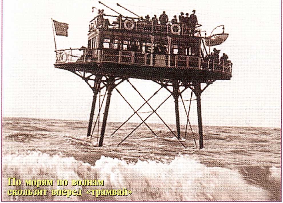 Тема: [06-2012] "Трамвай" идет по воде"Трамвай" идет по воде О строительстве старейшей электрической дороги в Старой Англии Из всех транспортных диковинок, созданных в викторианской Англии, — шарнирно-сочлененные корабли, дирижабли с паровым двигателем, мосты-транспортеры — самой причудливой остается электрическая железная дорога на побережье Брайтона и Роттингдина, построенная в самом конце XIX в. Ее назвали в народе «The Daddy long legs’» («Паук-косиножка»). ![]() Проектирование и строительство дороги стало плодом фантазии и неуемной энергии одного из пионеров британской электротехники и электрической тяги Магнуса Волка (Magnus Volk — в некоторых источниках его называют Магнус Фольк). Он родился в 1851 г. в Брайтоне и слыл талантливым изобретателем. К примеру, его дом был одним из первых в стране освещен электричеством, а к созданию электрических дорог он приступил еще в 1883 г. Это было время освоения электричества в промышленности. Всего за 5 лет до этого Вернер фон Сименс впервые продемонстрировал в Берлине практические возможности электрического пассажирского транспорта. В США в это же время Томас Эдисон построил демонстрационную линию в своей лаборатории в Нью Джерси, а в Ирландии началось строительство электрифицированной линии между городами Портраш и Бушмилс. Однако Волк превзошел всех. К концу 1883 г. началась успешная эксплуатация первого варианта спроектированной им линии с колеей шириной 61 см на побережье Брайтона. За первые 5 месяцев по ней было перевезено 30000 пассажиров. В 1884 г. колею перешили на 82,4 см. Длина дороги составила почти 1,6 км (1 милю). Дальнейшему строительству этой дороги на восток, по направлению к деревушке Роттингдин помешала высокая береговая скала. Решить проблему могло строительство виадука, подъем дороги на высоту, но это потребовало бы больших финансовых вложений. И тогда Магнус Волк выбрал оригинальный вариант: линия должна пройти над береговой террасой из известняка по приливно-отливной зоне. Пассажиров нужно было везти по воде или над ней. Несмотря на авантюрность, его проект поддержала компания «Brighton Corporation», которая взяла на себя финансирование и организационное руководство. Строительством дороги занялась компания «British Thomson-Houston». Сначала в 60 — 100 м от берега были уложены бетонные блоки. По ним прошли два рельсовых пути, расстояние между которыми было 5,5 м. Основными элементами изобретения, согласно проекту, сформулированному в патенте, стали сверх-широкое полотно для достижения устойчивости при неблагоприятных погодных условиях и вагон, состоявший из высокой стальной основы с пассажирской палубой, расположенной намного выше поверхности воды. Питание транспортного средства могло обеспечиваться паром, газом или электричеством. Длина дороги составляла 4,5 км. Она соединяла пирс, устроенный на молу в Брайтоне, со специально построенным в Роттингдине пирсом. Ширина пути не превышала 7,3 м. При высоком приливе линия уходила под воду на глубину 4,5 м. Официально новая линия считалась трамвайной, но в расписаниях и публичных материалах «Brighton Corporation» она называлась электрической железной дорогой. Верхнее строение пути включало в себя две параллельные колеи шириной 82,4 см при полной ширине пути 5,5 м, измеренной между внутренними поверхностями крайних рельсов. Рельсы с плоским основанием имели длину 9 м и удельный