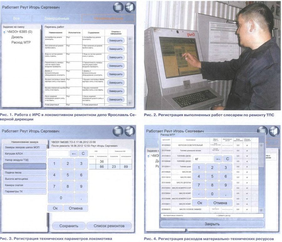 Тема: [02-2013] Индустриальные рабочие станции - новое слово в ремонте подвижного составаИндустриальные рабочие станции - новое слово в ремонте подвижного состава Чтобы организовать комплексное управление производственной деятельностью ремонтных предприятий, руководством Дирекции по ремонту тягового подвижного состава - филиала ОАО «РЖД» (ЦТР) было принято решение об оснащении производственных помещений индустриальными рабочими станциями (ИРС). Они были установлены во всех базовых депо в 2011 г. Введенные в действие цеховые ИРС способствуют достижению следующих целей: - управлению технологическими процессами ремонта и обслуживания тягового подвижного состава (ТПС); - контролю качества производственного процесса; - проведению инструктажа и контроля знаний работников производственных цехов; - контролю выполнения технологических операций в ходе ремонта ТПС. ИРС выполнены с применением современных решений в области эргономики рабочего пространства, использованием высокопрочных конструкционных материалов и адаптированы к работе в условиях агрессивной среды. Они оснащены антивандальным корпусом, сенсорным экраном и системой считывания информации с многофункциональных электронных карт (МЭК), что обеспечивает безопасные и оптимальные условия труда персонала. Кроме перечисленных основных элементов, в состав ИРС входят: ♦ система вывода графической информации; ♦ видеоконтроллер; ♦ вычислительное устройство; ♦ сетевой адаптер стандарта Ethernet; ♦ порты подключения внешних устройств; ♦ встроенная металлическая антивандальная клавиатура; ♦ источник бесперебойного электропитания; ♦ устройство принудительной вентиляции корпуса ИРС с системой фильтрации охлаждающего воздуха; ♦ система встроенной печати; ♦ программное обеспечение, состоящее из серверной и клиентской частей, реализующих функционал удаленного централизованного управления; ♦ защита от электромагнитного излучения, резкого изменения температуры, повышенной влажности и иного неблагоприятного воздействия внешней среды; ♦ внешний порт ввода-вывода USB. Примененная модель терминалов надежна, проста в эксплуатации и не требует дополнительных затрат на обслуживание. Программное обеспечение цеховых ИРС, разработанное специалистами ЗАО «ОЦВ», имеет интуитивно понятный интерфейс и, как показала опытная эксплуатация, не вызывает трудностей при работе у работников ремонтных депо (рис. 1). ![]() Программное обеспечение, установленное на ИРС, сочетает в себе функции для следующих сотрудников ремонтных и эксплуатационных депо: ■ слесаря по ремонту ТПС; ■ мастера ремонтного цеха; ■ техника по замерам; ■ начальника ремонтного локомотивного депо; ■ приемщика локомотивов Дирекции тяги. Выбор необходимой функциональности определяется автоматически в момент авторизации пользователя в программном обеспечении посредством многофункциональной электронной карты, содержащей данные о профессии сотрудника. Работы, индивидуально сформированные и назначенные мастером для каждого слесаря, поступают на терминал в режиме реального времени с автоматизированного рабочего места мастера (АРМ мастера). В свою очередь, слесарь ремонтного локомотивного депо регистрирует на ИРС фактическое выполнение назначенных мастером работ (рис. 2). После регистрации факта выполнения ра