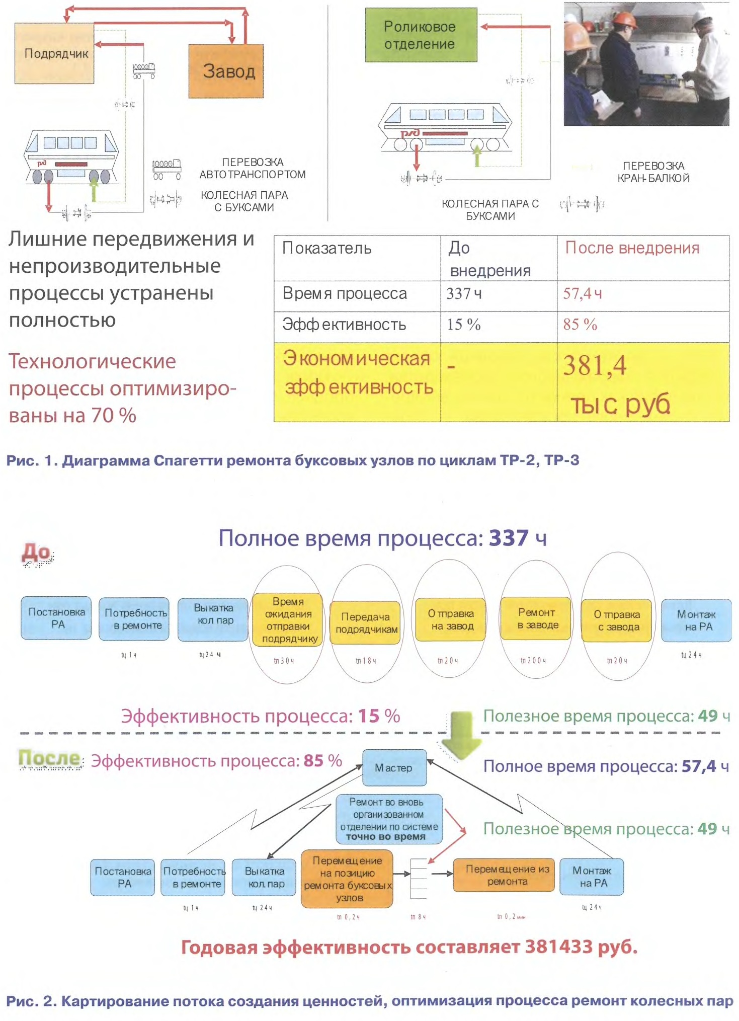 Тема: [02-2013] Оптимизировали ремонт рельсовых автобусовОптимизировали ремонт рельсовых автобусов Опыт депо Канаш Призерами отраслевого конкурса «Бережливое производство» среди моторвагонных предприятий страны в минувшем году стали депо Санкт-Петербург-Балтийский Октябрьской (I место), Канаш Горьковской (II место) и Вихоревка Восточно-Сибирской (III место) дирекций моторвагонного подвижного состава. Об опыте победителя редакция журнала рассказала в № 1, 2013 г. Сегодня мы знакомим читателей с результатами внедрения принципов бережливого производства при оздоровлении подвижного состава второго призера конкурса. Моторвагонное депо Канаш сравнительно молодое: оно было образовано в мае 2007 г., а до этого было частью одноименного локомотивного депо. Коллектив обеспечивает пригородные перевозки на неэлектрифицированных участках Горьковской дороги. Парк депо состоит из рельсовых автобусов РА1, РА2 и автомотрис АЧ2. Машины депо работают в самых разных местах Поволжья: в Казани, Йошкар-Оле, Ижевске, Чебоксарах и Нижнем Новгороде. ![]() Предприятие перепрофилировало имеющиеся цехи под ремонт рельсовых автобусов. Так, на базе бывшего цеха по ремонту дизель-поездов организован цех по ремонту рельсовых автобусов по циклам ТО-3, ТР-1, а на базе бывшего магистрального цеха по ремонту локомотивов — цех по ремонту рельсовых автобусов по циклам ТР-2, ТР-3. Прокат автобуса https://avtotravel.kiev.ua/category/bus выгоден предприятию, осуществляющему перевозки тогда, когда оно занимается этим видом деятельности эпизодически. Сегодня моторвагонное депо Канаш имеет, без преувеличения, стратегическое значение, поскольку выбрано базовым на сети дорог для ремонта рельсовых автобусов РА1 и РА2. Поэтому одна из главных задач предприятия — снизить себестоимость ремонта подвижного состава за счет использования инструментов бережливого производства. В минувшем году на базе депо Канаш прошла школа передового опыта по внедрению бережливого производства. В ходе ее проведено обучение руководителей и специалистов депо, а также «штурм-прорыв» по внедрению практики системы «5С» на пилотном участке моторвагонного депо — в аккумуляторном отделении. Примечание. Система организации и рационализации рабочего места была разработана в послевоенной Японии и получила свое название «5С» от пяти слов: сэири — «сортировка» — четкое разделение вещей на нужные и ненужные, избавление от последних; сэитон — «соблюдение порядка» (аккуратность) — организация хранения необходимых вещей, которая позволяет быстро и просто их найти и использовать; сэисо — «содержание в чистоте» (уборка) — соблюдение рабочего места в чистоте и опрятности; сэикэцу —- «стандартизация» (поддержание порядка) — необходимое условие для выполнения первых трех правил; сицукэ — «совершенствование» (формирование привычки) — воспитание привычки точного выполнения установленных правил, процедур и технологических операций. Первый результат последовательного прохождения всех шагов по внедрению системы «5С» — наведение порядка на рабочем месте мастера, верстаках и стеллажах, находящихся в отделении. При этом определено место хранения каждой отдельной вещи. Приобретенный опыт внедрения методики бережливого производства тиражирован в депо поэтапно в аккумуляторном цехе, роликовом отделении, электронном и элек