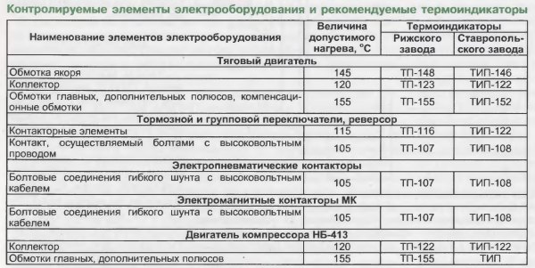 Тема: [06-2009] Диагностика оборудования термоиндикаторами плавленияДиагностика оборудования термоиндикаторами плавления По данным Департамента локомотивного хозяйства ОАО «РЖД» за 2007 г. 57 % порч и неисправностей и 31,5 % неплановых ремонтов электровозов связано с их электрооборудованием. Проведенные в Уральском отделении ВНИИЖТ на Свердловской, Южно-Уральской и Куйбышевской дорогах исследования показали, что в эксплуатации наблюдались частые нагревы тяговых двигателей и вспомогательных машин выше допустимых температур. Неисправности электрических машин электровозов связаны со старением изоляции и снижением ее диэлектрической прочности. Основным фактором, влияющим на снижение диэлектрической прочности изоляции, является ее нагрев. При увеличении температуры нагрева выше допустимой из-за длительных максимальных токов, недостаточного охлаждения воздухом срок службы обмоток сильно уменьшается. Исследование показало, что увеличение температуры изоляции на 10 °С больше допустимой величины уменьшает срок ее службы на 50 %, а при превышении на 50 °С может наступить тепловой пробой. Очень важно не допустить таких перегревов и иметь информацию для срочного принятия мер, предотвращающих эти перегревы. Причинами перегрева изоляции обмоток тяговых двигателей могут быть загрязнение снегозащищенных фильтров, засорение сеток, применение низкой частоты вращения вентиляторов при следовании с грузовыми поездами, а также тяжелые метеорологические условия и др. Перегревы обмоток мотор-компрессо-ров возникают из-за того, что увеличивается продолжительность и частота их включения вследствие больших утечек воздуха в тормозной системе. Этому способствует и то, что многие машинисты не включают вентиляторы на стоянках для охлаждения мотор-компрессоров. Перегрев подвижных и неподвижных контакторов и переключателей связан с плохим состоянием контакторных поверхностей, слабым нажатием контакторов, ослаблением затяжек болтов, а также с превышением максимальных токов. Для оценки теплового состояния обычно используют значения средних перегревов, которые установлены государственными стандартами. Одним из эффективных средств контроля тепловых режимов являются термоиндикаторы плавления — вещества, которые изменяют свой цвет в результате плавления одного или нескольких составных компонентов, имеющих строго определенную температуру плавления. Они являются необратимыми термоиндикаторами, у которых при нагреве до температуры перехода и выше происходят необратимые физические или химические процессы, в результате чего первоначальный цвет не восстанавливается. Термоиндикаторы не требуют специальной аппаратуры. Они применимы в широком интервале температур и для измерения труднодоступных поверхностей (практически любой формы). Ими можно контролировать температуру на поверхности деталей, находящихся под высоким напряжением (до 100 кВ и выше). Температура их перехода не зависит от времени теплового воздействия, влажности (до 98 % при температуре 40 °С), тумана и понижения давления. Они обладают высоким электрическим сопротивлением, на них не оказывают влияния воздействия полей высоких и сверхвысоких частот. Термоиндикаторы химически нейтральны по отношению к металлам и многим другим покрытиям, применяющимся в промышленности. О