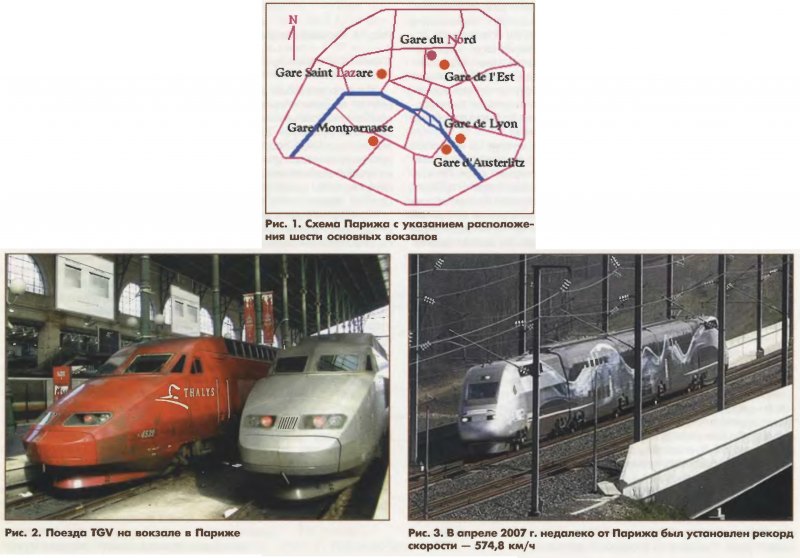 Тема: [06-2009] Рельсовый транспорт ФранцииРельсовый транспорт Франции Ведущая роль Франции в создании скоростных железных дорог хорошо известна. Эта страна пользуется заслуженной репутацией и в освоении многих других транспортных систем. Порой даже создается впечатление, что все развитие рельсовых путей в этой стране не сталкивалось с особыми затруднениями. На самом деле это не вполне так. Как известно, первые, по-настоящему широко эксплуатируемые линии железных дорог начали действовать в Англии и США в 1830 г. Во Франции же небольшая первая железнодорожная линия Сент-Этьен — Лион длиной в 58 км была введена в действие в период 1832 — 1833 гг. Однако после этого развитие железнодорожной сети Франции приостановилось. Выдвигались многие возражения против их строительства — экономические (вызовет упадок других средств сообщения), экологические и многие иные. Только в 1842 г. был принят акт, который легализовал создание железных дорог в стране. После этого возникло много мелких частных компаний, строивших и эксплуатировавших железные дороги. В 1855 г. они объединились, образовав 6 крупных компаний. Поражение в войне 1870 г. с Германией показало важность новых быстрых путей сообщения и подстегнуло это строительство. Во всяком случае, успешные действия союзников на западном фронте во время первой мировой войны во многом объясняются четким функционированием французской железнодорожной сети. Тем не менее, в критические моменты для быстрой переброски войск возможностей железных дорог не хватало. В решающий момент сражения на Марне успех союзников определила быстрая переброска резервов из Парижа в ночь на 8 сентября 1914 г. Состав одной бригады, а также артиллерия были переброшены по железной дороге. Другая же бригада была переброшена на реквизированных 600 машинах-такси. Кстати, это было первое применения автотранспорта для подобных целей. Части из машин потребовался ремонт бампера remont-bampera.com. Естественно, что в последовавший период между войнами во Франции стали уделять повышенное внимание роли железных дорог. В результате в 1930 г. социалистическое правительство Леона Блюма национализировало железные дороги страны. Национальному обществу железных дорог (SNCF) ныне принадлежит 31484 км из общей длины 31939 км пути. Ширина колеи практически везде 1435 мм. Исключение составляют лишь 99 км с колеей в 1 м. В отличие от автотранспорта движение поездов во Франции левостороннее. Только небольшая зона Эльзаса и Лотарингии, которая определенное время принадлежала Германии, имеет правостороннее движение. В период железнодорожного строительства на грани XIX — XX вв. в Париже было построено несколько тупиковых вокзалов. Они расположены достаточно близко к центру города. На рис. 1 показано расположение шести основных вокзалов Парижа по отношению к зоне современной застройки. На самом деле вокзалов в Париже больше. Однако остальные малы и не играют большой роли. Кроме того, есть железнодорожные терминалы около аэропортов. В Париже уделялось большое внимание не только их удобному расположению по отношению к центру города, но и архитектурному оформлению. В конце XIX в. столица Франции была местом проведения нескольких всемирных выставок. Они всегда являлись значительными событиями. На них, например, зрители впервые увидели электрическое освещение. Для показа успе
