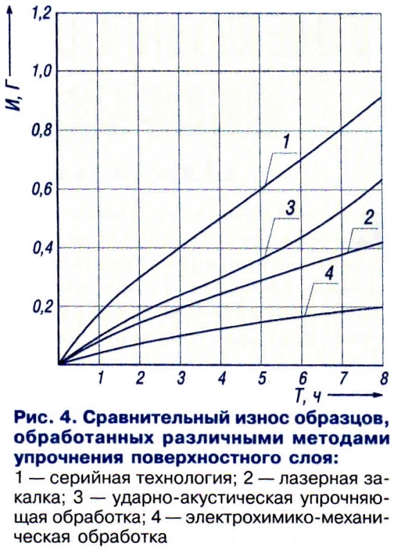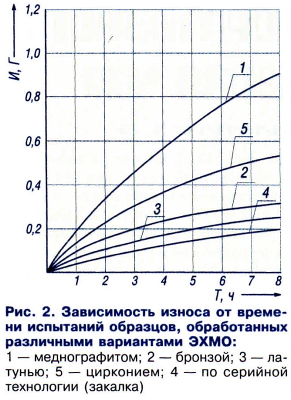 Тема: [04-2005] Электрохимико-механическая обработка деталей продлит их ресурсЭлектрохимико-механическая обработка деталей продлит их ресурс Причиной более 90 % всех отказов техники является износ, вызванный трением. На преодоление силы трения расходуется около 30 — 50 % механической энергии. Надежность узлов трения обеспечивается износостойкими и антифрикционными покрытиями. Толщина таких покрытий изменяется от микрометров до нескольких миллиметров в зависимости от их назначения и условий применения. Необходимые свойства достигаются нанесением защитного слоя при помощи химических, физических, механических методов, диффузионным насыщением или химико-термической обработкой. Известные методы химико-термического, электрохимического, газотермического, вакуумного, ионно-плазменного упрочнения помимо своих положительных свойств имеют и недостатки: сложность технологического процесса, химическую агрессивность применяемых жидкостей и сред, высокую стоимость технологических операций, негарантированное качество. По сравнению с названными методами электрохимико-механический способ обработки деталей (ЭХМО) имеет ряд положительных особенностей — простоту необходимого оборудования, незначительное время обработки, высокие технико-экономические показатели, экологичность процесса. Сущность технологического процесса ЭХМО состоит в том, что стальные и чугунные детали после окончательной традиционной обработки (резание, шлифование, полирование, хонингование и др.) покрывают тонким слоем (1... 5 мкм) латуни, меди или бронзы. Покрытие производят путем трения латунного, медного или бронзового прутка (инструмента) о поверхность детали, смазывая при этом место контакта технологической жидкостью, например, глицерином, полиэтиленгликолем ПЭГ-115, ПГВ. При трении материал прутка переносится на стальную (или чугунную) поверхность детали. ![]() Принцип обработки заключается в следующем (рис. 1). ![]() - состав и состояние металла для обработки; - геометрическая характеристика поверхности; - материал анода; - усилие прижатия анода; - состав ИОЖ; - плотность тока; - режимы обработки. Основу процесса составляет электрохимическое растворение металла анода и осаждение ионов на поверхности детали с одновременным механическим воздействием на обрабатываемую поверхность, в результате чего микронеровности заполняются материалом анода и компонентами рабочей жидкости, повышающими триботехнические показатели детали. Поверхности инструмента-анода и обрабатываемой детали не являются идеально гладкими — на них имеются неровности. При перемещении анода относительно детали выступы анода входят в контакт с выступами детали. Под действием тока происходит микроразряд, формирующий направленное движение электронов. В электрическом поле, возникшем в микроэлектрод- ном пространстве, происходит перемещение более тяжелых частиц — ионов в направлении, обратном движению электронов. Электроны, имеющие меньшую массу, быстро достигают поверхности анода, нагревают металл, вызывая интенсивное растворение его в зоне прохождения тока. Обработку выполняют на модернизированном механическом оборудовании, например, токарном, фрезерном или расточном станке. Многообразие факторов, влияющих на качество покрытия, требует индивидуального их подбора для каждого конк