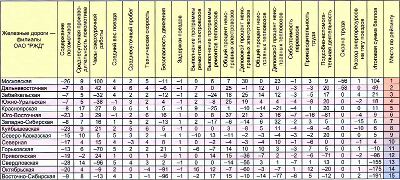 Тема: [06-2005] Комплексная оценка работы служб локомотивного хозяйства за 4 месяца 2005 годаКомплексная оценка работы служб локомотивного хозяйства за 4 месяца 2005 года В начале текущего года руководством ОАО «РЖД» утверждено «Положение о комплексной оценке работы служб локомотивного хозяйства», разработанное специалистами Департамента локомотивного хозяйства. С помощью балльной системы определяется рейтинг служб, учитываются основные технико-экономические и качественные показатели работы хозяйств за каждый месяц и нарастающим итогом. Работа служб оценивается на основе установленных в ОАО «РЖД» регулярных статистических и отчетных данных. Это Положение создано с целью повышения эффективности работы хозяйств, повышения ответственности их руководителей за выполнение возложенных на них задач, обеспечения безопасности движения поездов, улучшения основных показателей функционирования отрасли. Предлагаем читателям ознакомиться с результатами работы локомотивщиков сети за четыре месяца текущего года. ![]() |