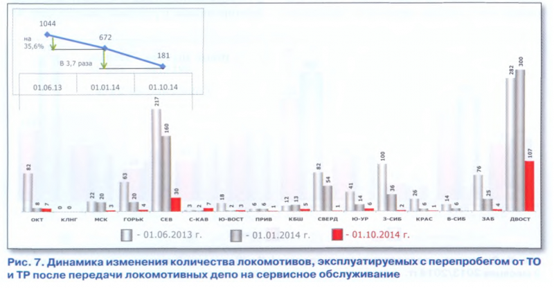 Тема: [11-2014] Стратегия развития локомативного комплекса: некоторые итоги и перспективыСтратегия развития локомативного комплекса: некоторые итоги и перспективы Об итогах заседания Правления ОАО «РЖД» по передаче всего парка локомотивов на полное сервисное обслуживание 14 октября текущего года состоялось заседание Правления ОАО «РЖД» по вопросу реформирования и перспективах развития локомотивного комплекса с учетом передачи всего парка локомотивов на полное сервисное обслуживание. В ходе обсуждения президент Компании В.И. Якунин подчеркнул, что от того как реформируется эта вертикаль, зависят и результаты всей Компании, ее финансово-экономические показатели, а также значительная часть инвестпрограммы. На Правлении с подробным докладом выступил вице президент ОАО «РЖД» — начальник Дирекции тяги А.В. ВОРОТИЛКИН. В своем выступлении Алексей Валерьевич отметил, что в начале реформ перед локомотивным хозяйством стояли ключевые задачи по обеспечению перевозочного процесса Компании базовым ресурсом — технически исправным локомотивом и необходимым количеством локомотивных бригад, формированию вертикали управления локомотивным комплексом, развитию компетенций персонала на всех уровнях, повышению экономической эффективности деятельности. Реформирование локомотивного комплекса осуществлялось по следующим этапам: •разделение производственной функции на эксплуатационную и ремонтную составляющие; •преобразование структуры«Желдорреммаш» в дочернее общество; •внедрение сервисного обслуживания локомотивов; •формирование Дирекции тяги как единого центра ответственности за обеспечение перевозок тяговыми ресурсами — локомотивами и локомотивными бригадами. ![]() ![]() Сегодня в локомотивном комплексе задействовано более 20,5 тыс. локомотивов, работают 220 тыс. сотрудников, а на его содержание расходуется более 500 млрд, руб., включая инвестиции. Функционал участников локомотивного комплекса в результате реформы сложился следующим образом: ♦Дирекция тяги как единый центр ответственности за предоставление локомотивов и локомотивных бригад, балансодержатель локомотивов; ♦Дирекция по ремонту тягового подвижного состава — балансодержатель зданий, сооружений, машин и оборудования ремонтных локомотивных депо, а также поставщик услуг по обслуживанию и ремонту устройств безопасности и микропроцессорных систем; ♦Проектно-конструкторское бюро локомотивного хозяйства (ПКБ ЦТ) — центр анализа и методологии локомотивного комплекса; ♦сервисные компании — ООО «ТМХ-Сервис» и ООО «СТМ-Сервис» — ответственные за текущее обслуживание и ремонт локомотивов ОАО «РЖД»; ♦локомотиворемонтные заводы ОАО «Желдорреммаш» — ответственные за заводские и средние виды ремонтов; ♦локомотивостроительные заводы — производство локомотивов, инновации и применение новых инженерных решений и материалов. Понимая масштаб требуемых преобразований, необходимо было подходить к реформированию умеренно консервативно. Все изменения совершались поэтапно, переходя от простого к сложному, учитывая и исправляя ошибки. Это позволило минимизировать возможные риски переходного периода, оценить правильность предпринятых шагов и обеспечить устойчивую эксплуатационную работу. Каждый этап сопровождался организацией «пилотных проектов», где 