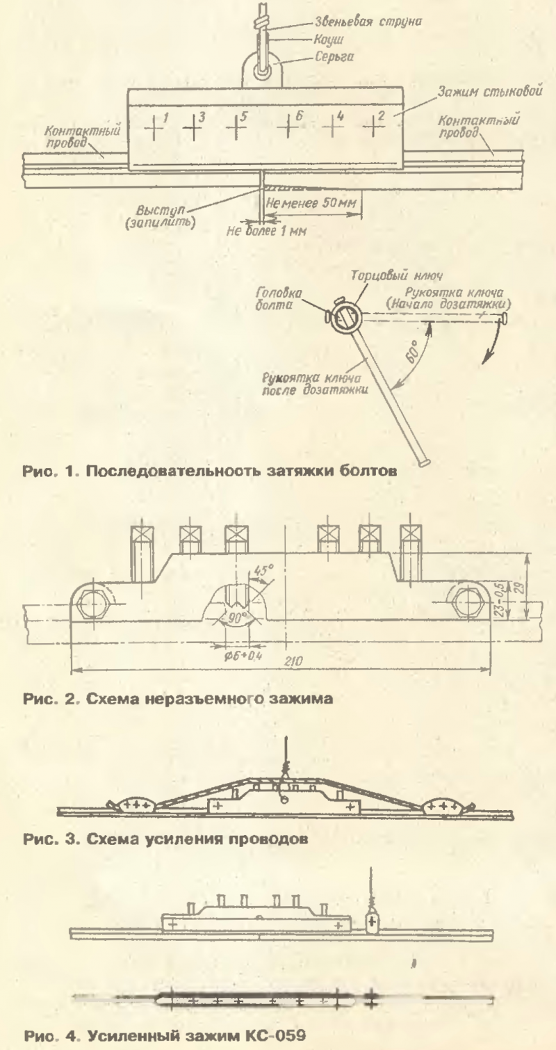 Тема: [01-1995] Новые технические указания для электроснабженцевНовые технические указания для электроснабженцев В связи с вводом в действие Правил устройства и технической эксплуатации контактной сети электрифицированных железных дорог (№ ЦЭ/197) необходимо напомнить практическим работникам о требованиях указании ЦЭ МПС, изданных в последнее время Так, в техническом указании Ns К-6/94 «О приведении контактной сети в соответствие с Правилами устройства и технической эксплуатации контактной сети электрифицированных железных дорог» говорится, что следует организовать изучение персоналом дистанции электроснабжения упомянутых правил, предусмотреть проведение технической учебы с привлечением работников служб и руководства дистанций электроснабжения. Это позволит более глубоко изучить материалы и закрепить полученные знания. Службам электроснабжения рекомендовано разработать и утвердить каждой дистанции электроснабжения перечень мероприятий по приведению устройств контактной сети в соответствие с требованиями правил. В них должны быть определены объемы работ, время их выполнения, вводя соответствующие задания в ежегодные планы повышения надежности Обобщенные данные по основным работам со сроками их завершения в целом по хозяйству надо представлять в ЦЭ МПС. Службы электроснабжения дорог обязаны контролировать выполнение пунктов 2.1.8, 2.2.4, 2 8.7, 2.8.8, 2.9 16, 2.13.7, 2.15.16, 2.22 16, 2.22.20 правил. Требования п. 2.19 9 необходимо выполнять, исходя из местных условий, после решения начальника службы электроснабжения В указании Ns К-7/94 «О модернизации воздушных стрелок» дороги информируют, что в институте «Трансэлектропроект» разработан типовой проект ОТУ 32 4528 «Модернизированные воздушные стрелки». В рабочих чертежах даны схемы, общие виды и узлы воздушных стрелок на обыкновенном, перекрестном стрелочных переводах и над глухим пересечением путей при полукомпенсированной контактной подвеске. Для каждого вида воздушных стрелок приведены варианты их выполнения- с двойными вертикальными, скользящими и перекрестными струнами, а также с устройством одновременного подъема контактных проводов. ЦЭ МПС обязывает, начиная с 1 января 1995 г., монтировать воздушные стрелки в соответствии с требованиями данного проекта. На эксплуатируемых стрелках в течение двух лет надо заменить имеющиеся укороченные ограничительные накладки на ограничители из уголка 32 х 32 х 4 или трубы 21,3 х 2,8 следующей длины в зависимости от марки крестовины: ![]() В п. 2.8.7 Правил устройства и технической эксплуатации контактной сети электрифицированных железных дорог внесено следующее изменение: текст «длиной 2500 — 1800 мм» заменен на «длиной 1500 мм для стрелок 1/6 и 1/9, 1700 мм для 1/11 и 2000 мм для 1/18 и 1/22». Службам электроснабжения предписано организовать централизованное изготовление ограничительных накладок. В указании N? К 8/94 «О применении на контактной сети штампованных струновых зажимов» специалистов дороги информируют что на Московском энергомеханическом заводе организовано серийное производство струновых зажимов контактной сети методом холодной штамповки из бронзовой ленты Изделие для контактного провода КС-046-1 весит 0,121 кг, несущего троса сечением 70, 95 и 120 КС-046-2 имеет массу 0,113 кг.Скобы зажимов фиксируют на проводах контактной сети болтовым соединением 10 мм, имеющим цинко