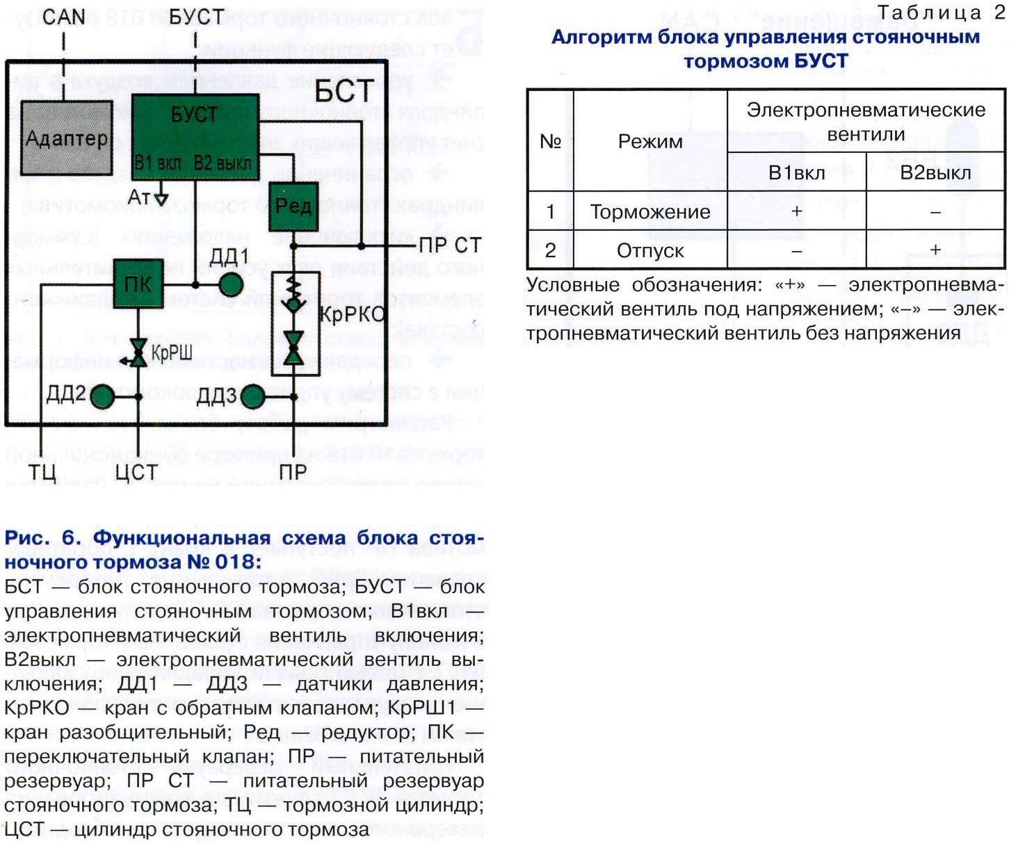 ![]() Блок стояночного тормоза № 018 реализует следующие функции: