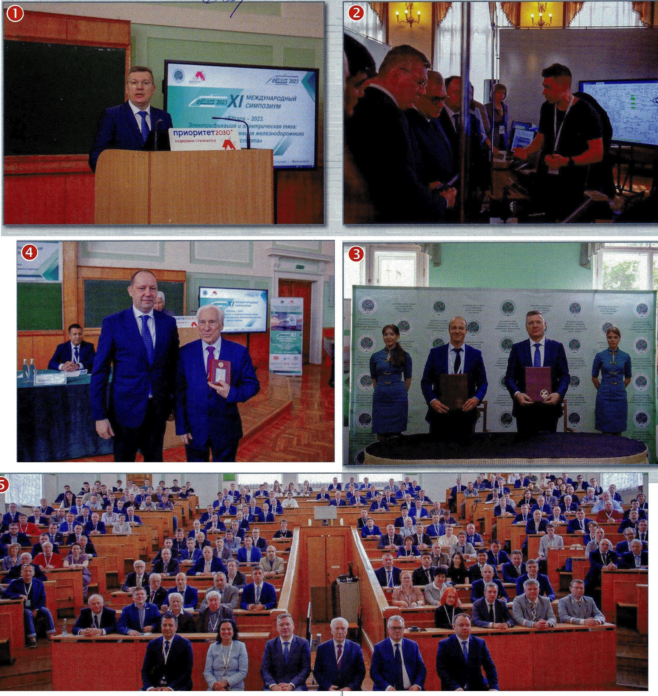 Тема: [07-2023] "ЭЛТРАНС-2023""ЭЛТРАНС-2023" Недавно в Петербургском государственном университете путей сообщения Императора Александра I (ПГУПС) прошел XI Международный симпозиум «Eltrans — 2023. Электрификация и электрическая тяга: цифровая трансформация железнодорожного транспорта». В работе симпозиума приняли участие руководители ОАО «РЖД», ученые и специалисты ведущих проектных, научно-исследовательских и смежных транспортных организаций, представители вузов, занимающиеся вопросами развития железнодорожного транспорта. Симпозиум «Eltrans» содействует распространению передового опыта и представлению результатов научных исследований и разработок в области совершенствования электрического подвижного состава, инфраструктуры электроснабжения, информационных технологий, автоматики и связи железных дорог. В этот раз симпозиум включал в себя три конференции: «Локомотивы. Электрический транспорт. XXI век», «Цифровая трансформация устройств электроснабжения железных дорог и городского электрического транспорта», «Инфокоммуникационные системы и интеллектуальные технологии в задачах управления на железнодорожном транспорте». Традиционно состоялся круглый стол, посвященный подготовке кадров для отрасли. Впервые в этом году симпозиум прошел в рамках программы стратегического академического лидерства «Приоритет 2030», цель которой — создание прогрессивных современных университетов как центров научно-технологического и социально-экономического развития страны. По словам начальника Департамента технической политики ОАО «РЖД» В.Е. Андреева, сотрудничество теоретиков и практиков сегодня выходит на новый уровень. Ситуация дает уникальный шанс нашей промышленности занять те участки, где всегда видели иностранных партнеров. Мы открыты для любых решений нашей науки, — сказал он. На снимках: