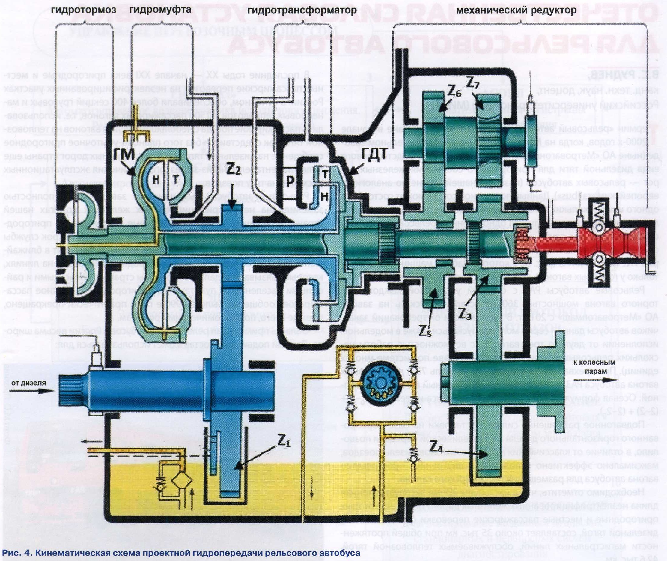 Тема: [06-2023] Отечественная силовая установка для рельсового автобусаОтечественная силовая установка для рельсового автобуса В.С. РУДНЕВ, канд. техн, наук, доцент, Российский университет транспорта (МИИТ) Термин «рельсовый автобус» появился в нашей стране в начале 2000-х годов, когда на Мытищинском машиностроительном заводе (ныне АО «Метровагонмаш») было освоено производство нового вида дизельной тяги для пригородного сообщения железных дорог — рельсовых автобусов (назван в нашей стране по аналогии с европейским «railbus»). Данный подвижной состав может состоять из одного или нескольких вагонов, работающих на дизельных двигателях. Изначально завод выпускал одновагонные рельсовые автобусы серии РА1 (рис. 1) с двумя кабинами машиниста и конструкционной скоростью 100 км/ч, позднее освоил выпуск двух- и трехвагонных серий РА2 (рис. 2) и РАЗ (рис. 3), у которых кабина машиниста имеется только у головных вагонов, конструкционной скоростью 120 км/ч. ![]() Рельсовые автобусы РАЗ с силовой установкой каждого моторного вагона мощностью 360 кВт стали выпускать на заводе АО «Метровагонмаш» с 2019 г. В зависимости от требований заказчиков автобусы данной серии могут выпускаться также в модельном исполнении от двух до трех вагонов (с возможностью работы нескольких рельсовых автобусов в одном составе по системе многих единиц). При трехвагонном исполнении (модель 753) два головных вагона автобуса РАЗ — моторные, промежуточный вагон — прицепной. Осевая формула такого рельсового автобуса имеет вид (20-2)+ (2-2) + (2-20). Подвагонное размещение силовой установки на базе форсированного горизонтального дизеля и гидравлической передачи позволило, в отличие от классических моторных вагонов дизель-поездов, максимально эффективно использовать внутреннее пространство вагона автобуса для размещения пассажирского салона. Необходимо отметить, что в настоящее время эксплуатационная длина неэлектрифицированных железных дорог России, на которых пригородные и местные пассажирские перевозки осуществляются дизельной тягой, составляет около 35 тыс. км при общей протяженности магистральных линий, обслуживаемых тепловозной тягой, 42,6 тыс. км. Одной из приоритетных задач практически на всей сети железных дорог страны на сегодняшний день является организация пригородных и местных перевозок на неэлектрифицированных участках. Дело в том, что на железных дорогах Советского Союза почти все пригородные и местные перевозки на неэлектрифицированных участках осуществлялись с использованием дизель-поездов зарубежного производства, которые к началу XXI века практически все были выведены из эксплуатации и списаны. В последние годы XX — начале XXI века пригородные и местные пассажирские перевозки на неэлектрифицированных участках России, в основном, обеспечивали более 400 секций грузовых и маневровых тепловозов и 1500 пассажирских вагонов, т.е. использовались пассажирские поезда с небольшим числом вагонов на тепловозной тяге. Как следствие, и без того планово-убыточное пригородное сообщение на дизельной тяге стало для железных дорог страны еще более нерентабельным из-за резкого увеличения эксплуатационных расходов на тягу поездов. ![]() Рельсовые автобусы Мытищинского завода почти полностью заменили на неэлектрифицированных железных дорогах нашей страны устаревшие и малоэкономи