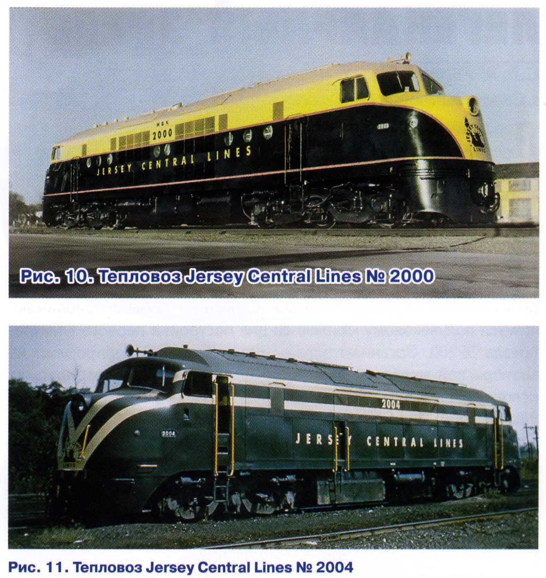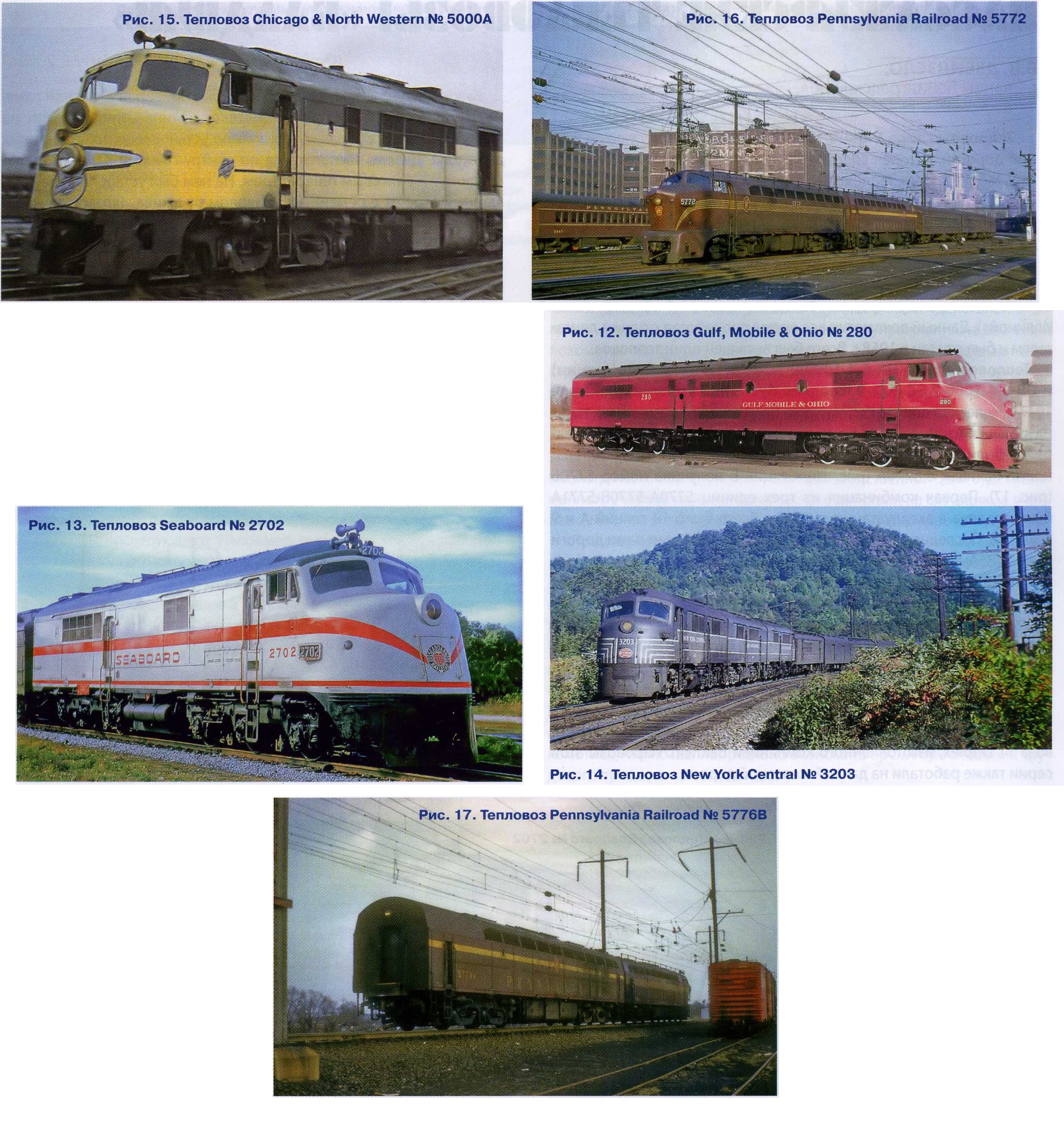 Тема: [04-2023] Пассажирские тепловозы БалдвинПассажирские тепловозы Балдвин В.В. ДЗЕНДЗЕЛО, г. Сланцы Ленинградской обл. Тепловозы типа 0-6-6-0 1000/2 NA 10 и 11. Следующей железной дорогой, которая сделала заказ на локомотивы в 1946 г., была Gulf, Mobile & Ohio. Тепловозы получили дорожные номера 280 и 281 (рис. 12). Локомотивы были введены в эксплуатацию в г. Джексон в 1947 г. Тепловоз имел одну кабину управления, а также другое расположение дизелей и оборудования в кузове. В конструкции тепловозов было применено два дизеля такой же серии — 608 NA, но с расположенными генераторами в сторону кабины. Парогенератор располагался в конце кузова. Вспомогательное оборудование в действие приводилось через муфты и шкивы с клиноременной передачей. Вентиляторы охлаждения были оборудованы электродвигателями с питанием их от тягового генератора. На всех пассажирских тепловозах Baldwin применялось охлаждающее устройство нагнетательного типа, установленное в крыше кузова. Вентиляторы работали от электродвигателей (кроме тепловозов ДБ),также получавших питание оттяговых генераторов. По бокам кузова были сделаны широкие вырезы для забора внешнего воздуха и охлаждения им систем. На тепловозе были применены тяговые генераторы модели 480D, четыре тяговых двигателя 370F, двухмашинный агрегат YG40D. Передаточное число тягового редуктора составляло 58:21. ![]() Работали тепловозы только по системе многих единиц с фирменными пассажирскими поездами «Rebel» («Мятежник») на побережье Мексиканского залива между городами Сент-Луис и Мобайл. Локомотивы были отставлены от работы в 1955 г. Простояв на базе запаса в г. Джексон, они были исключены из инвентаря в 1958 г. Всего было построено два тепловоза. Тепловозы типа DR-6-4-1500. В 1946 г. компанией Baldwin был предложен новый пассажирский тепловоз DR-6-4-1500. Он имел конструкцию, которая позволяла эксплуатировать его на путях второстепенных линий со слабым верхним строением пути. По цене и эксплуатационным расходам локомотив не должен был превышать показатели тепловозов F3 от компании EMD. После ознакомления с проектом, представленным железнодорожным компаниям, только Seaboard Air Line (SAL) и New York Central (NYC) заказали эти тепловозы в 1946 г. На дороги локомотивы поступили в 1947 г. Seaboard Air Line получила три односекционных однокабинных тепловоза с номерами 2700 — 2702 (рис. 13), New York Central — два трехсекционных, со средней (бустерной) секцией и номерами, обозначавшими каждую секцию (рис. 14). Первый тепловоз имел номера 3200-3300-3201, второй — 3202-3301-3203. Оба локомотива прибыли на дорогу в 1948 г. На каждой секции тепловоза был установлен один восьмицилиндровый четырехтактный дизель серии 608SC с турбонаддувом мощностью 1500 л.с. Параметры двигателя были такие же, что и у предыдущих моделей. Диаметр цилиндра — 324 мм; ход поршня — 394 мм; минимальное число оборотов — 275 об/мин; максимальное — 625 об/мин. (Окончание. Начало см. «Локомотив» № 3, 2023 г.) Кузов стальной обтекаемой формы был приварен к главной раме. Рама опиралась на две трехосные тележки типа Commonwealth, на крайних колесных парах которых было установлено по два тяговых двигателя. Дизель располагался по центру главной рамы и жестко соединялся с тяговым генератором. На нем был установлен двухмашинный агрегат с ременным приводом от шкива. Тяговое электрооборудование включало в себя генератор 471 А, четыре тяговых двигателя 370F, двухмашинный агрегат YG42A. Через муфт