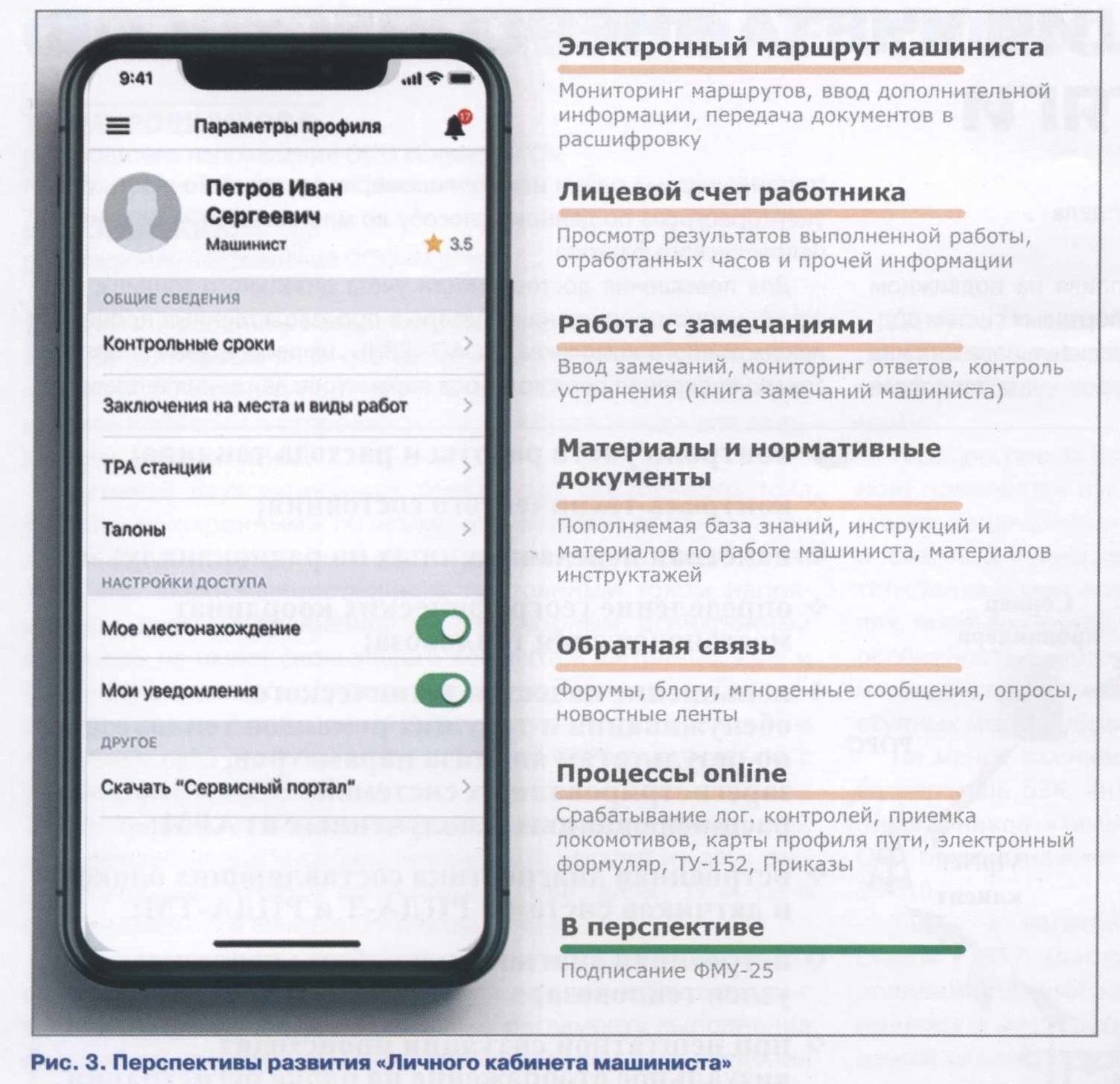 Сегодня завершены работы по интеграции в единый комплекс автоматизированных систем учета дизельного топлива (АСУ ДТ РЖД), топливных складов и единой корпоративной системы финансов и ресурсов (ЕК АСУФР), что позволяет автоматизировать учет топлива, в том числе и бухгалтерский, с применением электронного документооборота на топливном складе. Кроме того, завершена интеграция указанных выше двух систем с автоматизированными системами локомотивного комплекса (Подсистема взаимодействия с подвижным составом СВПС АСУТ НБД-2). В настоящее время Дирекцией тяги реализованы и эксплуатируются такие операции, как передача информации с автоматизированных бортовых систем учета дизельного топлива о «приемке/сдаче» локомотива, о «начале/конце экипировки» локомотива, о количестве дизельного топлива в баках локомотива при формировании электронного маршрута машиниста. На полигонах Красноярской и Горьковской дорог дополнительно реализована возможность создания в АРМ ТЧД электронного требования на экипировку локомотива. Так, на топливном складе экипировка данного локомотива производится через АСУ ДТ РЖД (данные по топливу, Ф.И.О. машиниста и др. поступают от тепловоза по GSM), которая сводит баланс по топливу при получении соответствующих данных от автоматизированной бортовой системы тепловоза по результатам отпущенного топливно-раздаточной колонкой, принятого топлива и передачей результатов специалистам на топливный склад. Далее формируется в электронном виде квитанция формы ФМУ-25, которую подписывают электронной подписью (ЭЦП) работник топливного склада и машинист локомотива. По итогам работы формируется суточная ведомость формы ФМУ-24 и направляется в ЕК АСУФР. Вместе с тем, реализована автоматическая передача информации о количестве дизельного топлива с борта локомотива в электронные акты передачи/приемки локомотива в/из ремонта ТУ-162 ЭТД иТУ-31л ЭТД. Данная технология по результатам подписания соответствующих дополнительных соглашений к договорам по купле-продажи дизельного топлива в части его учета по электронным актам ТУ-162 ЭТД и ТУ-31л ЭТД позволит снизить расход дизельного топлива при «горячем» простое локомотивов в ожидании сервисного обслуживания благодаря объективному отражению количества топлива в этих актах с минимизацией влияния человеческого фактора на величину передаваемого в сервисную компанию дизельного топлива. В то же время, на сегодня перспективным направлением в ОАО «РЖД» является развитие «Личного кабинета машиниста» с выполнением функций электронной подписи (ЭП) первично-учетных документов (рис. 3), в том числе маршрута машиниста и квитанций на отпуск нефтепродуктов формы ФМУ-25. Это позволит отказаться от электронных терминалов, многофункциональной электронной карты (МЭК) в эксплуатационных локомотивных депо, а также картридеров на топливных складах. Для реализации автоматизированного учета дизельного топлива на всех полигонах дорог требуется провести работы по установке новых и модернизации уже установленных бортовых систем на общую сумму 1,9 млрд руб., в том числе: