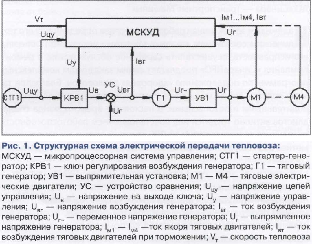 В парке российских железных дорог и большинства других железнодорожных администраций пространства колеи 1520 мм распространены тепловозы, на которых реализована электрическая передача мощности переменно-постоянного тока, типовая структурная схема которой приведена на рис. 1.