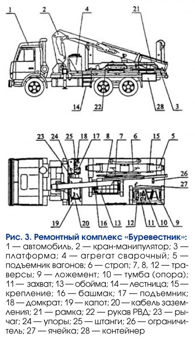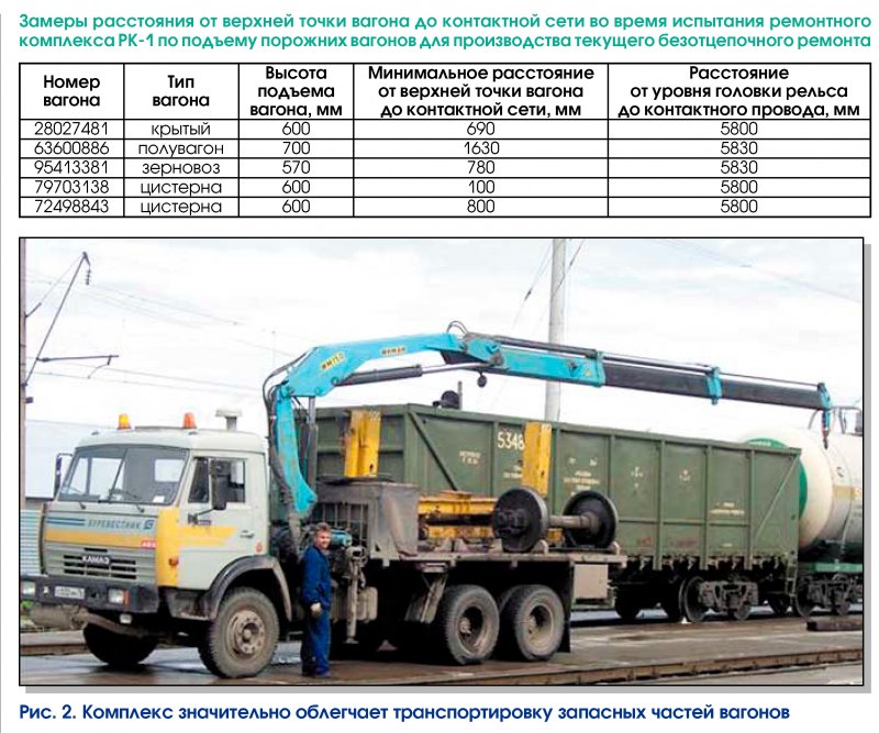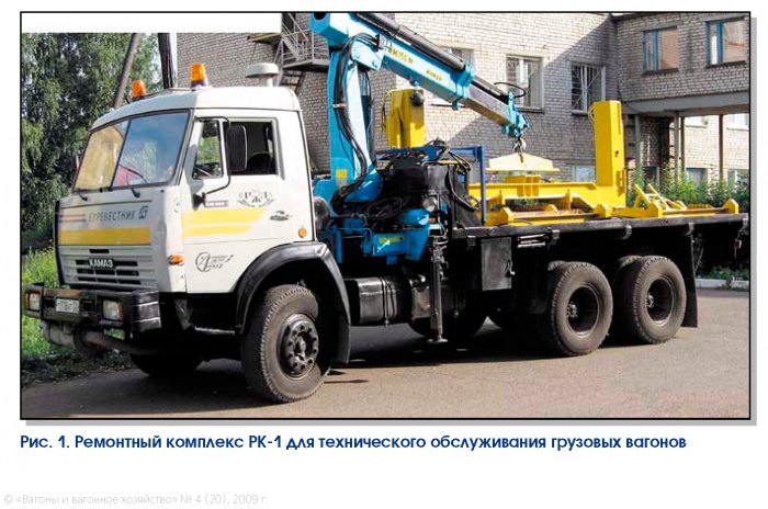 Кроме того, по специальной программе «Развитие эксплуатационных предприятий вагонного хозяйства» на дороги для технического обслуживания грузовых вагонов в транзитных парках и на перегонах поставляют самоходные ремонтные комплексы РК-1М (рис. 1).