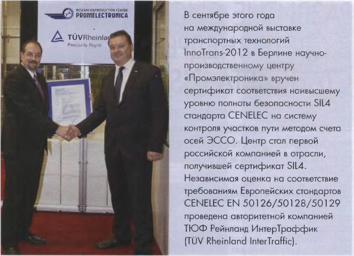 Тема: [12-2012] Развитие систем ЖАТ в свете внедрения стандарта IRISРазвитие систем ЖАТ в свете внедрения стандарта IRIS Внедрение производителями железнодорожной техники международного стандарта IRIS определяет пути развития систем автоматики и телемеханики. И.Г. Тильк, генеральный директор, канд. техн. наук Важным критерием является отношение надежности, готовности, ремонтопригодности и безопасности к стоимости жизненного цикла (RAMS/LCC). Улучшение этих параметров обеспечивается за счет: интеграции телекоммуникационных и IT-систем, средств измерения, диагностики и удаленного мониторинга; создания самонастраивающихся и самообучающихся систем с функциями поддержки принятия решений; оптимизации технических и программных решений для участков с различной интенсивностью движения при использовании централизованной и распределенной архитектуры; перехода к обслуживанию технических средств ЖАТ по текущему состоянию; внедрения в разработку, производство и проектирование апробированных в мире технологий улучшения показателей RAMS. Для управления устройствами и движением поездов на станции и прилегающих перегонах аппаратные и программные составляющие систем ЖАТ, связи, технической диагностики и информационных технологий интегрируются в единый комплекс. Основой такого комплекса является система централизации, реализующая традиционные функции линейного пункта диспетчерской централизации, а также измерения, диагностику и мониторинг. Объединение этих функций позволяет сократить стоимость жизненного цикла продукции за счет исключения параллельного функционирования на станциях нескольких программно-аппаратных комплексов. Такая технология реализована в микропроцессорной централизации стрелок и сигналов МПЦ-И. В ней программная интеграция обеспечивается вычислительным комплексом, использующим клиент-серверную архитектуру. Для снижения трудоемкости и стоимости внедрения, а также в целях повышения безопасности разработана система автоматизированного проектирования САПР, генерирующая программные модули вычислительного комплекса МПЦ-И для конкретного объекта. При модульном построении современных систем безопасности и открытой архитектуре применяются унифицированные протоколы обмена информаиией, осуществляющие стыковку аппаратно-программных компонентов различных производителей. Благодаря таким протоколам не нужно разрабатывать технические решения по увязке, что в свою очередь снижает стоимость жизненного цикла продукта. ![]() Развитие системы счета осей ЭССО также связано с оптимизацией соотношения RAMS/LCC. Стыковка системы с информационно-управляющими комплексами обеспечивается открытым протоколом обмена информацией MODBUS RTU. На базе ЭССО разработаны технические решения для измерения скорости и ускорения подвижного состава, а также создана система определения типов и контроля передвижения вагонов и локомотивов СОВА для ведения вагонной модели, контроля приема-сдачи вагонов и защиты от краж. В целях обеспечения рентабельности ^эксплуатации систем СЦБ на малодеятельных участках необходимо снижать стоимость их обслуживания. Оптимальные характеристики RAMS/LCC имеет микропроцессорная полуавтоматическая блокировка МПБ. Она оснащена подсистемами диагностики и мониторинга, а также автоматического переключени