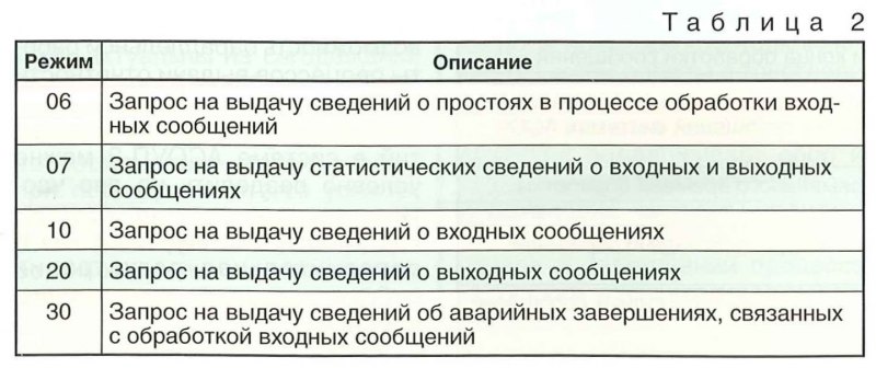 На данный момент реализованы наиболее востребованные режимы (табл. 2).