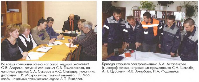 Тема: [01-2014] Безопасность движения - основная задача коллективаБезопасность движения - основная задача коллектива Р.В. МОСКАЛЕВ, главный инженер Смоленской дистанции СЦБ Московской ДИ Смоленская дистанция СЦБ - одно из самых эффективно работающих предприятий Московской дирекции инфраструктуры. Эксплуатационно-техническая деятельность предприятия неоднократно получала высокую оценку. Коллектив не раз становился победителем сетевого соревнования линейных подразделений хозяйства автоматики и телемеханики. Смоленская дистанция связи и электротехники была создана в 1929 г. на базе Вяземского участка связи. В 1930 г. в связи с активным развитием техники произошло разделение хозяйств путейцев и связистов. На полигоне дистанции к этому времени уже действовали полуавтоматическая блокировка, электрожезловая система, механическая централизация, избирательная и дальняя телефонная связь, телеграфные и ручные телефонные станции. В 1932-1933 гг. станции Смоленск-Центральный, Смоленск-Сортировочный, Колодня были оснащены электрической централизацией. Согласно справке центрального архива МПС в 1933 г. предприятие значилось в списке действующих дистанций сигнализации и связи первого и второго разряда. Считается, что с этого года началась его история. Великая Отечественная война потребовала огромных усилий от работников дистанции. Они обслуживали прифронтовой участок Дорогобуж - Ярцево, восстанавливали пути после артобстрелов, обеспечивали надежную работу устройств для продвижения поездов к линии фронта. Когда Смоленск и область были освобождены, железнодорожный узел оказался полностью разрушен, оборудование и кабели вывезены в Германию. В кратчайшие сроки силами работников дистанции были восстановлены средства связи и СЦБ. В послевоенный период началось возрождение хозяйственных объектов и техники. Электромонтеров, электромехаников, телеграфистов, телефонистов в основном готовили на местных курсах. Уже в пятидесятые годы введена в эксплуатацию новая автоблокировка, взамен устаревшей жезловой системы построена полуавтоматическая релейная блокировка, на станциях-электрическая централизация. Вначале ЭЦ внедряли на станциях с небольшим количеством стрелок. На основе полученного опыта централизовали стрелки всех остальных станций. На полигоне дистанции постоянно испытывались и внедрялись современные системы и устройства - полярно-кодовая система автоблокировки, необслуживаемый блок-пост полуавтоматической блокировки, шкаф питания для устройств ЭЦ, образцы рельсовых педалей и рельсовых цепей, новые устройства радиосвязи. К 1967 г. ЭЦ функционировали на 21 станции, было централизовано 178 стрелок, что позволило высвободить около 200 стрелочников. За успехи, достигнутые при внедрении новой техники на железнодорожном транспорте, дистанция стала участником Выставки достижений народного хозяйства СССР. Мощная производственная база на предприятии была создана в 70-е годы в период руководства Н.А. Лелявко. Силами работников построены служебнотехнические здания. В связи с электрификацией коренным образом менялись устройства автоблокировки, аппаратура связи. Взамен воздушных прокладывались кабельные линии связи. В 1976 г. введена в эксплуатацию система ДЦ «Нева», в 1991 г. - ДЦ «Минск». Начиная с 2003 г. внедряются системы диспетчерс