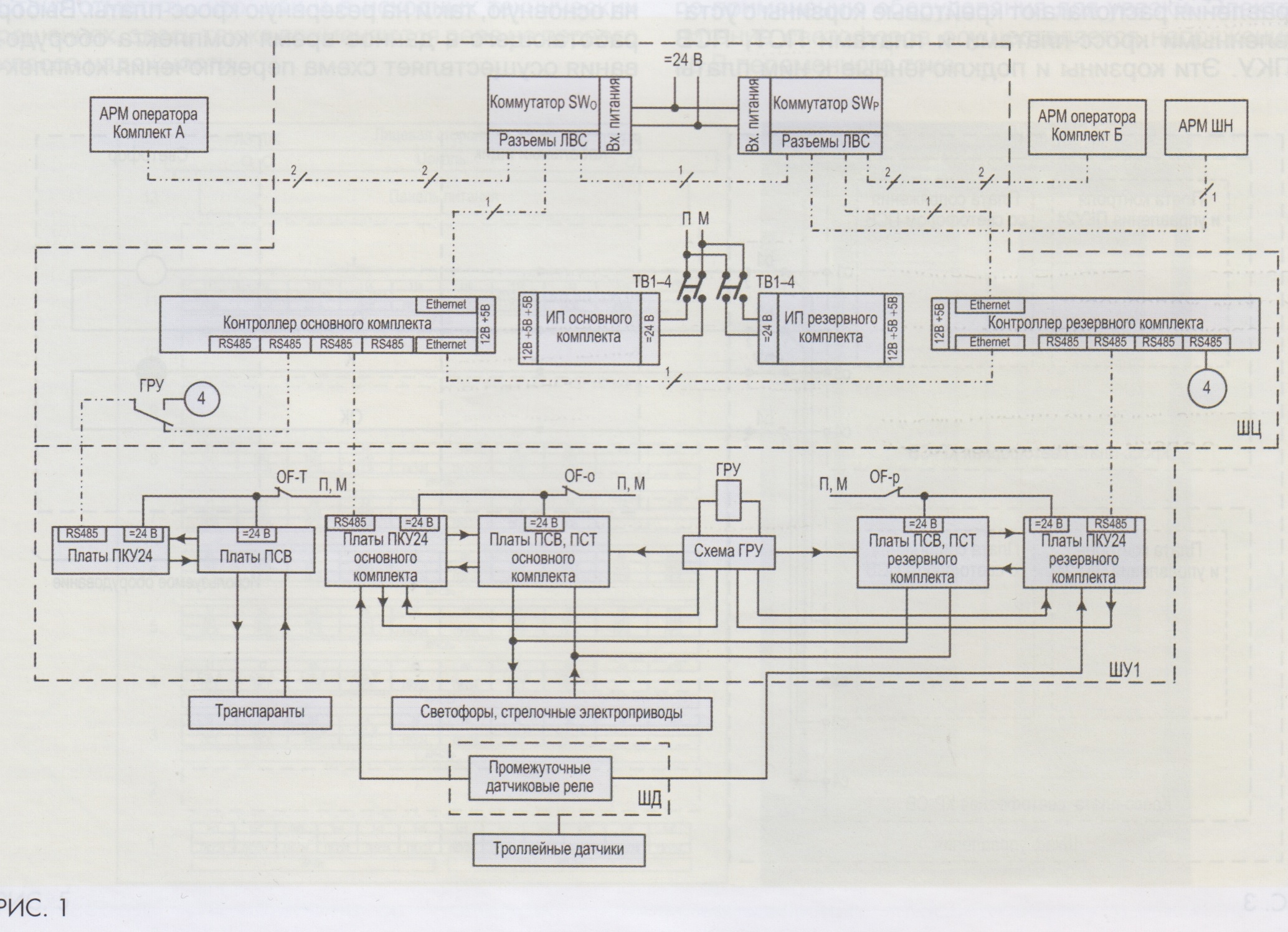 Тема: [04-2023] Технические решения по централизации управления железнодорожным транспортом в подземных горных выработкахТехнические решения по централизации управления железнодорожным транспортом в подземных горных выработках НИКИТИН Александр Борисович, Петербургский государственный университет путей сообщения Императора Александра I, заведующий кафедрой «Автоматика и телемеханика на железных дорогах», д-р техн, наук, профессор, Санкт-Петербург, Россия БУШУЕВ Сергей Валентинович, Уральский государственный университет путей сообщения, проректор по научной работе, доцент, канд. техн, наук, г. Екатеринбург, Россия ГУНДЫРЕВ Константин Вячеславович, Уральский государственный университет путей сообщения, заведующий научно-исследовательской лабораторией «Компьютерные системы автоматики», г. Екатеринбург, Россия КОПЫТОВ Дмитрий Викторович, Уральский государственный университет путей сообщения, заведующий отделением программного обеспечения научно-исследовательской лаборатории «Компьютерные системы автоматики», г. Екатеринбург, Россия Ключевые слова: локомотивная откатка, подземная горная выработка, централизация, электропривод, троллейный датчик, система управления Аннотация. В статье рассматривается актуальная тема оборудования подземных горных выработок системами электрической централизации. Дано понятие электровозной откатки, перечислены проблемы ее эксплуатации. Рассматриваются разработанные технические решения по модернизации существующих и строительству новых систем управления электровозной откаткой на основе микропроцессорной техники. Описаны преимущества представленных технических решений и выводы по их применению. Системы управления движением поездов на железнодорожном транспорте представлены двумя основными видами: станционные и перегонные. Тиражируемыми станционными системами являются три типа систем электрической централизации стрелок и сигналов (ЭЦ): релейные, релейно-процессорные (РПЦ) и микропроцессорные (МПЦ). К системам, обеспечивающим безопасность движения подвижного состава между раздельными пунктами, относятся различные системы интервального регулирования, прежде всего системы полуавтоматической и автоматической блокировки. В основном они применяются на магистральном транспорте. Однако многие предприятия горной, металлургической промышленности также обладают развитой железнодорожной инфраструктурой. В связи с этим на них тоже возникает необходимость применения аналогичных систем управления. ОСОБЕННОСТИ ПЕРЕДВИЖЕНИЯ НА ШАХТНОМ ЖЕЛЕЗНОДОРОЖНОМ ТРАНСПОРТЕ Особенностью шахтного железнодорожного транспорта является высокая разветвленность инфраструктуры, обуславливающая увеличение концентрации технических средств. Устройства функционируют в агрессивной среде - повышенная влажность, металлическая пыль, низкое сопротивление балласта, повышенное воздействие электромагнитных помех, а в отдельных случаях взрывоопасная среда. Тем не менее здесь применяются в основном те же системы управления с аналогичными алгоритмами функционирования. При этом они адаптированы под конкретный объект путем использования специализированных исполнительных устройств железнодорожной автоматики и телемеханики. ![]() Подземная железнодорожная инфраструктура таких предприя