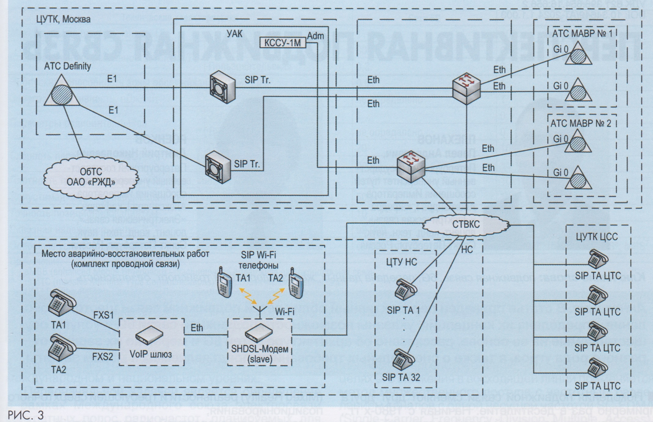 Тема: [01-2014] Усовершенствованная связь с местом аварийно-восстановительных работУсовершенствованная связь с местом аварийно-восстановительных работ СТРЕКАЛОВ Сергей Викторович, ОАО «РЖД», Центральная станция связи, Центр управления телекоммуникационными ресурсами, заместитель начальника, Москва, Россия ЧЕЛЫШЕВ Александр Владимирович, ОАО «РЖД», Центральная станция связи, Центр управления телекоммуникационными ресурсами, заместитель начальника цеха Ns 1, Москва, Россия Железнодорожная сеть страны, как известно, составляет более 85 тыс. км и объединяет пространство России в единое целое. При этом на железных дорогах не исключены чрезвычайные события, происходящие в том числе вследствие неблагоприятных природных явлений. В результате возникает необходимость оперативного производства аварийно-восстановительных работ. В статье рассказывается о том, что сделано в последние годы для усовершенствования связи с местом аварийно-восстановительных работ. Железная дорога - зона повышенной опасности, поэтому на ней не исключены чрезвычайные происшествия в виде сходов подвижного состава, наездов на препятствия на железнодорожных переездах и др. Кроме того, из-за неблагоприятных природных явлений возникают случаи размыва железнодорожного полотна, обвалы, оползни и наводнения. Ежегодно проводятся различные технические и технологические мероприятия по предупреждению аварийных ситуаций на сети, однако полностью исключить чрезвычайные происшествия, к сожалению, не удается. Работники ЦСС, как правило, одними из первых приезжают на место проведения аварийно-восстановительных работ для подключения устройств связи. Для оценки ситуации и принятия правильных управленческих решений в соответствии с оперативным приказом Ситуационного центра мониторинга и управления чрезвычайными ситуациями (ЦЧС) организуется видеоконференцсвязь непосредственно с места ЧС с трансляцией видеоизображения в оперативный штаб и ЦЧС ОАО «РЖД». ![]() Для этих целей 170 восстановительных поездов и 32 передвижных узла на базе автомобиля КамАЗ оборудованы мобильными комплектами видеоконференцсвязи со спутниковыми терминалами МКВКС. Необходимо отметить, что трансляция видеоизображения по спутниковому каналу связи достаточно дорогостоящая процедура. Конечно, сейчас появилась возможность трансляции видео через сервис МКТ, но такая технология в значительной степени зависит от качественного покрытия сотовой сети на месте проведения работ. В большинстве случаев такого покрытия нет, особенно на Восточном полигоне. При этом работники ЦСС для взаимодействия используют РОРС GSM, что в условиях отсутствия покрытия сотовой сети тоже весьма проблематично. Вместе с тем, следует напомнить, что все электрифицированные участки железных дорог в соответствии с требованиями ПТЭ оборудованы кабельными линиями связи, позволяющими в случае ЧС организовывать с перегона связь с поездным диспетчером, телефонистками управления дороги и ОАО «РЖД» по двухпроводным цепям. Их количество в кабеле ограничено, обычно это цепи перегонной (ПГС) и аварийно-восстановительной (АВС) связи. Для возможности более широкого использования ограниченного ресурса кабельных цепей с целью обеспечения качественной связи и передачи видеоизображения с высоким разрешением специалисты ЦУТ