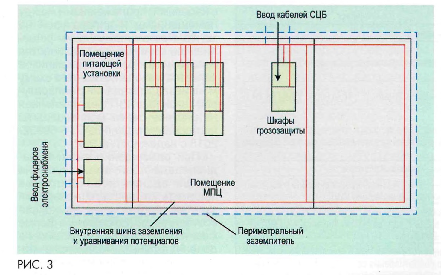 В 2022 г. Центральной станцией связи был введен в действие документ №ЦСС-663/р, уже упоминавшийся в статье, который устанавливает общие требования к содержанию служебно-технических зданий и сооружений с кабельными коммуникациями технологической железнодорожной электросвязи. Он уточняет и дополняет требования, изложенные в ранее разработанных нормативных документах, ссылки на которые в нем приведены. Данный норматив также указывает на необходимость руководствоваться требованиями ряда других НД. Так, при отсутствии исполнительной документации на заземляющие устройства для служебно-технического здания измерения заземляющих устройств должны быть выполнены и проверены в соответствии с РД 15334.0-20.525-00 «Методические указания по контролю состояния заземляющих устройств электроустановок». Исправное состояние контуров заземляющих устройств электроустановок служебно-технических зданий и сооружений, устранение недостатков в их содержании должно обеспечиваться эксплуатирующим подразделением служебно-технического здания/со-оружения в соответствии с Единым корпоративным стандартом ОАО «РЖД» предоставления и обслуживания помещений, утвержденным 1 июля 2013 г. № 1462р. В 2023 г. вышел в свет документ «Комплексная защита от атмосферных и коммутационных перенапряжений объектов инфраструктуры железнодорожного транспорта. Технические решения (для опытной эксплуатации)» [6] для применения на проектируемых и реконструируемых объектах инфраструктуры железнодорожного транспорта в составе подсистем железнодорожной автоматики и телемеханики, связи и энергоснабжения. Данные технические решения предназначены для проектирования мероприятий по защите аппаратуры объектов от молниевых и коммутационных перенапряжений и позволяют максимально использовать имеющиеся на объектах системы защиты или их элементы. Для оптимизации затрат и обеспечения необходимого уровня защиты мероприятия на основе этих технических решений должны состоять из нескольких этапов. Предпроектное обследование электромагнитной обстановки (ЭМО) - определяются максимальные уровни электромагнитных помех, воздействующих на аппаратуру железнодорожной инфраструктуры, а также выявляются существующие системы защиты или их элементы: устройства внутренней защиты от коммутационных и атмосферных перенапряжений, внешней молниезащиты и заземления, которые могут использоваться в проектируемой системе. Проектирование - рассматриваются варианты типовых решений исходя из данных, полученных при обследовании ЭМО, которые будут положены в основу проектных решений. При этом могут применяться готовые типовые решения, а также скорректированные с учетом особенностей объекта. В технических решениях приведены типовые схемы заземлителей для зданий с аппаратурой электросвязи. Эти схемы принципиально не отличаются от аналогичных схем для зданий с аппаратурой ЖАТ. В случае совместного размещения оборудования электросвязи и ЖАТ или другой аппаратуры железнодорожной инфраструктуры в одном здании заземлитель должен быть единым. Конфигурация заземлителя здания размером 10x20 м, сопротивление которого не превышает 4 Ом без учета естественных заземлителей для удельного сопротивления грунта менее 120 Ом м, приведена на рис. 1. Другие варианты типовых схем заземлителей для здани