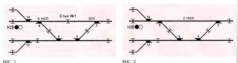 Тема: И снова о сбоях АЛСН на станционных путяхИ снова о сбоях АЛСН на станционных путях B.А. ВОРОНИН, начальник отдела ОАО «НИИАС» C.В. ШЕМЕТОВ, ведущий инженер Специалисты института неоднократно анализировали сбои кодов АЛСН на станционных рельсовых цепях. Кроме этого, было выполнено несколько научно-исследовательских работ по этой тематике, разработаны, проверены и утверждены технические решения по кодированию станционных рельсовых цепей. На основании проведенных исследований можно сказать, что основными причинами сбоев кодов являются: применение коротких рельсовых цепей; двойная смена кодовых комбинаций в процессе следования по станции; отказ аппаратуры АЛС или РЦ, в том числе и кабельной линии; обрыв рельсовых соединителей или возникновение переходных сопротивлений в штепсельных и других соединителях; короткое замыкание изолирующих стыков и в рельсовой линии (в гарнитуре стрелки, шпале или из-за посторонних предметов); грозовые перенапряжения и, как следствие, просадка питающего напряжения. Превышение допустимого уровня асимметрии тягового тока и, как следствие, намагничивание сердечника питающих и кодовых трансформаторов с изменением их электрических параметров также приводят к сбоям АЛСН. Кроме того, сбои происходят из-за изменения параметров кодовых сигналов, их несоответствия нормативным значениям, неприема локомотивными устройствами защитного кода КЖ, намагниченности рельсов, влияния высоковольтных линий электропередач, помех от электроподвижного состава, неисправности локомотивных устройств и др. Практически все причины сбоев АЛС известны, а также в большинстве случаев известны и способы их устранения. Рассмотрим вариант исключения коротких рельсовых цепей на станции. При движении поезда по станционным рельсовым цепям последовательно включаются кодовые сигналы по маршруту следования. При этом кодирование происходит двумя способами в зависимости от частоты сигнального тока. Первый -включение кодирования рельсовой цепи с момента ее занятия, когда частота сигнального тока и тока кодов АЛСН совпадают, второй - предварительное включение кодирования рельсовой цепи или с момента ее занятия, когда частоты сигнального тока и тока кодов АЛС не совпадают. В первом случае при проследовании изолирующих стыков и перерыве в приеме кодовых сигналов АЛС за счет прохождения изолированного участка локомотивные устройства принимают дополнительный импульс. Он обусловлен наличием в рельсовой цепи сигнального тока РЦ той же частоты, что и АЛСН. Этот эффект проявляется прежде всего при движении в направлении к питающему концу рельсовой цепи. Длительность дополнительного импульса зависит от скорости срабатывания путевого реле и расстояния между приемными катушками и первой колесной парой локомотива. Во втором случае дополнительный импульс отсутствует, так как рельсовая цепь работает на отличной от АЛСН частоте. Однако если предварительное кодирование рельсовой цепи не применяется, то длительность дополнительной паузы зависит от скорости срабатывания путевого реле и расстояния от приемных катушек до первой колесной пары локомотива. Время срабатывания путевого реле тональной рельсовой цепи составляет 0,4-0,6 с, в таких цепях, как правило, следует применять предварительное кодирование. При проектирован