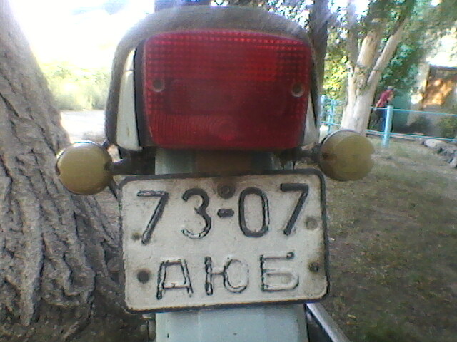 Мотоцикл ещё с советским номером.