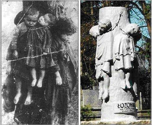 ![]() Витос добавил 22.03.2014 в 20:37 Настоящий памятник Степану Бандере. Внизу в камне выбито: "Если я это забуду, пусть Небо забудет про меня" Этот монумент стоит в Польше. Слеплен с реальной фотографии расправы над детьми, которых бандеровцы, возглавляемые "национальным героем", убивали прикручивая проволокой к столбам - экономили патроны..