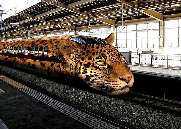 Если не приглянулось фото женщины, разрисованной под попугая, ловите фото поезда, разрисованного под леопарда, а может ягуара