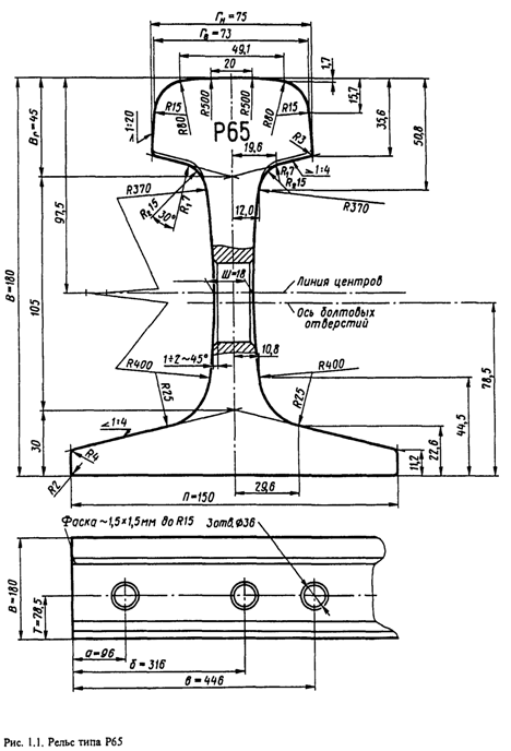 Тема: [Статья] Рельсы. Общие сведенияРельсы. Общие сведения Назначение рельсов и требования, предъявляемые к ним Назначение рельсов — направлять колеса подвижного состава, непосредственно воспринимать, упруго перерабатывать и передавать нагрузки от колес на подрельсовое основание. На участках с автоблокировкой и электрической тягой рельсы, кроме этого, должны выполнять функцию проводников электрического тока. За историю существования железных дорог рельсы прошли долгую эволюцию от чугунных до железных и, наконец, стальных. Форма рельсов также претерпевала изменения: известны уголковые, грибовидные, двухголовые, широкоподошвенные рельсы. В настоящее время на мировой сети железных дорог повсеместно применяются только широкоподошвенные рельсы. Тип рельсов определяется массой рельса длиной 1,0 м, значение которой округленно проставляется после буквы Р. На главных путях железных дорог России эксплуатируются рельсы типов Р65 (87,7 % протяжения путей), Р75 (2,9 %), Р50 (8,8 %) и Р43 и легче (2,4 %). В настоящее время прокатываются и укладываются в основном рельсы Р65 (рис. 1.1). Рельсы должны быть прочными (иметь достаточные моменты инерции и моменты сопротивления, чтобы возникающие в них напряжения изгиба и кручения не превышали допустимых значений), долговечными (рельсовая сталь должна обладать высокой твердостью, износостойкостью и вязко-высокую контактно-усталостную выносливость. Масса рельса, его очертание (профиль), качество рельсовой стали и особенности изготовления находятся между собой в тесной взаимосвязи и зависимости от нагрузок колесных пар подвижного состава на рельс, скоростей движения и грузонапряженности. Типы, профили, длины рельсов Основные характеристики применяемых типов рельсов приведены в табл. 1.1. Поверхность катания головки нового рельса для центральности передачи нагрузки от колеса имеет выпуклое криволинейное очертание. У рельсов Р75, Р65 и Р50 средняя часть головки прокатывается по радиусу 500 мм, переходящему в радиус 80 мм. Переход к боковым граням головки осуществляется по кривой радиуса 13—15 мм, близкого к радиусу выкружки гребней новых колес локомотивов и вагонов, что обеспечивает достаточно плотное прижатие гребня колеса к боковому закруглению головки рельса и предотвращает вкатывание гребней колес на рельс. Боковые грани головок выполняют с уклоном 1:20 (см. рис. 1.1). Это необходимо для размещения большего по сравнению с рельсами более легких типов количества металла в головке при сохране-нии ее предельной ширины поверху, связанной с шириной бандажей колес и допустимой величиной эксцентриситета передачи давления на рельс. ![]() Во избежание значительной концентрации местных напряжений и образования закалочных трещин при остывании рельса после проката сопряжения боковых и нижних граней головки и всех граней подошвы выполняют по кривым радиуса 2—4 мм. Переход от головки и подошвы к шейке рельса, через которую головка передает давление от колес подвижного состава на подошву, а подошва — на подрельсовые опоры, делается особенно плавным, и сама шейка имеет криволинейное очертание (см. рис. 1.1). Это обеспечивает минимальную концентрацию местных подголовочных напряжений и напряжений в зоне перехода шейки в подошву. Радиус сопряжения шейки с подошвой значительно больше, чем радиусы сопряжения головки с шейкой