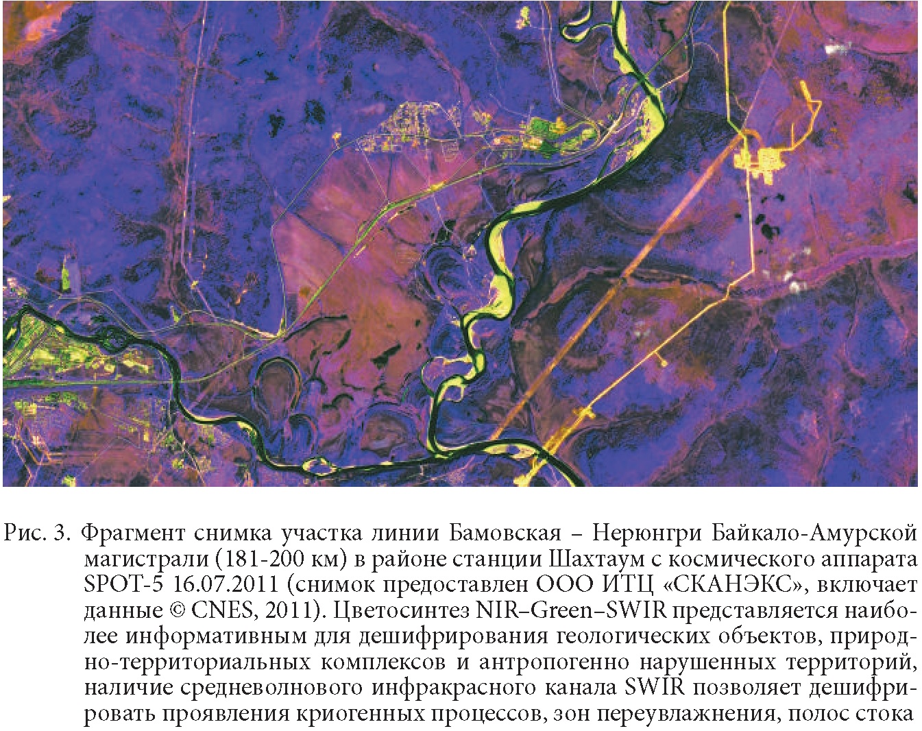 Тема: Возможности применения спутникового дистанционного зондирования в системе геотехнического мониторинга железнодорожной инфраструктуры Восточного полигонаВозможности применения спутникового дистанционного зондирования в системе геотехнического мониторинга железнодорожной инфраструктуры Восточного полигона Духин С.В. Василейский А.С. Ключевые слова: дистанционное зндирование Земли, ДДЗ, спутниковая съемка, геотехнический мониторинг, железнодорожная инфраструктура Преимущества технологий дистанционного зондирования Земли (ДЗЗ), обеспечивающего оперативное получение больших объемов актуальной и достоверной (объективной) геопространственной информации с одномоментным захватом обширных территорий [12], обусловили их широкое применение при проведении проектно-изыскательских работ при строительстве и реконструкции инфраструктурных объектов железнодорожного транспорта, а также позволили эффективно дополнять традиционно применяемые методы содержания пути и сооружений: инструментального контроля состояния пути и сооружений, периодических осмотров, специальных инженерно-геологических обследований и режимных наблюдений [2, 4]. Дешифрирование материалов спутниковой съемки в том числе для выявления районов развития инженерно-геологических процессов и наблюдения за динамикой изменения инженерно-геологических условий традиционной входит в состав комплексных исследований при инженерно-геологических изысканиях железных дорог как на пред-проектном этапе, так и в период строительства и эксплуатации [18]. Методы дистанционного контроля процессов на земной поверхности на основе спутниковой съемки могут эффективно применяться как часть комплексной системы геотехнического мониторинга железнодорожной инфраструктуры [1, 3] на участках со сложными инженерногеологическими условиями, обеспечивающей периодический контроль экзогенных процессов и оценку состояния инфраструктурных объектов, прогноз развития неблагоприятных процессов и назначение мероприятий по предотвращению разрушительных воздействий [14, 15]. Анализ данных спутниковой съемки позволяет осуществлять контроль ситуации в полосе отвода и охранных зонах, а также на прилегающих (в том числе труднодоступных) территориях, выявляя области развития природных и антропогенных процессов, которые оказывают или могут оказать неблагоприятные или разрушительные воздействия на объекты железнодорожной инфраструктуры. При этом выявляются источники так называемых внезапных деформаций, располагающиеся за пределами полосы отвода, вне зоны контроля методами, предусмотренными в системе текущего содержания пути. Контроль экзогенных воздействий с использованием данных ДЗЗ особенно важен при длительной эксплуатации инфраструктурных объектов железнодорожного транспорта, в течение которой природно-техногенные процессы зачастую приводят к изменениям первоначальных условий эксплуатации, исходя из которых рассчитывались меры инженерной защиты пути и сооружений при проектировании [16]. Пилотный проект по применению технологии мониторинга потенциально-опасных воздействий на объекты железнодорожной инфраструктуры с использованием данных спутниковой съемки был реализован на участке Туапсе-Адлер Северо-Кавказской железной дороги [11]. Разработанная АО