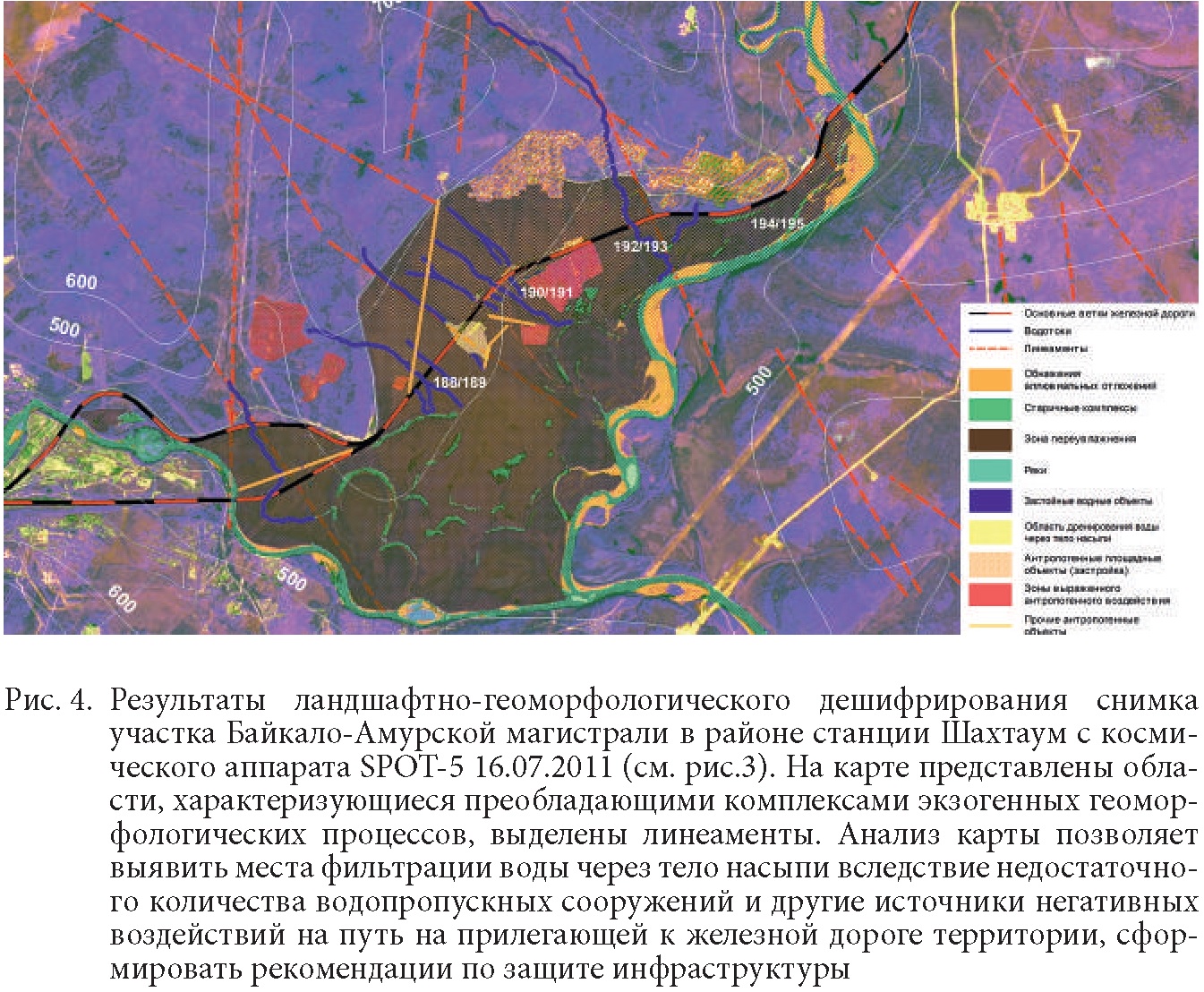 Мероприятия третьей группы, не связанные непосредственно с реализацией геотехнического мониторинга, предлагалось реализовывать периодически в ходе работ по модернизации железнодорожной инфраструктуры Восточного полигона и при последующей ее эксплуатации. При этом предполагалось получение и предоставление причастным службам ОАО «РЖД» материалов оперативной спутниковой съемки по всей протяженности железных дорог данного полигона или по отдельным участкам (зонам строительных работ, зонам ЧС) для решения следующих задач: