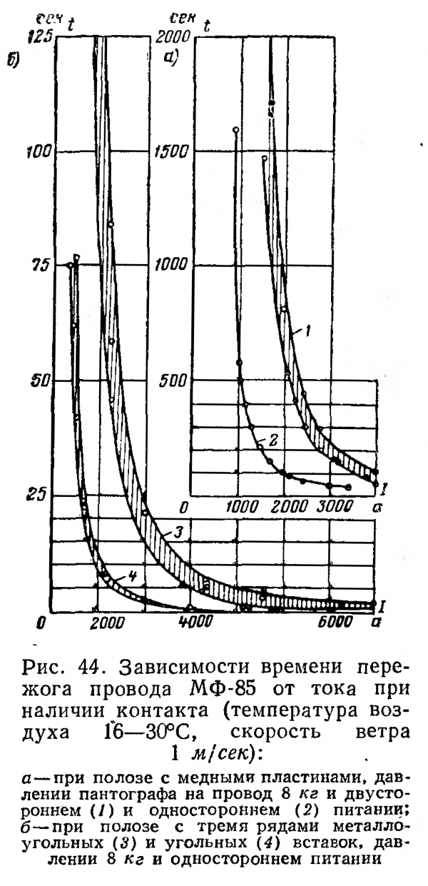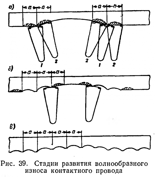 Тема: [Статья] Работа устройств контактной сети в условиях эксплуатацииРабота устройств контактной сети в условиях эксплуатации Все элементы контактной сети — опоры и их арматура, провода, тросы, изоляторы, переключающие и защитные устройства — подвержены, как и любые другие технические средства, физическому и моральному старению. Если моральное старение зависит от общего технического прогресса, то физическое во многом обусловлено качеством эксплуатационного содержания контактной сети и электроподвижного состава. Чтобы продлить срок службы тех или иных устройств контактной сети и обеспечить их надежное состояние, необходимо знать, как работают эти устройства в различных эксплуатационных условиях. Провода и тросы. Наибольшему изменению в эксплуатационных условиях подвержен контактный провод, который изнашивается в процессе токосъема. Износ контактного провода зависит от многих факторов: количества проходов пантографов, материала и формы сечения провода, материала контактирующих элементов полоза пантографа, площади контакта «полоз — провод», величины и рода снимаемого тока, давления пантографа на провод, сорта и вида смазки полозов, конструктивного выполнения контактной подвески и пантографов, метеорологических условий и т. д. Наиболее важными из этих факторов являются материал контактного провода и контактирующих элементов пантографа, вид смазки полозов и величины снимаемых пантографами токов. Большей износостойкостью по сравнению с широко применяемым в настоящее время контактным проводом из твердотянутой электролитический меди обладают бронзовые провода (из меди с легирующими присадками: кадмием, магнием и др.). Так, в условиях работы наших дорог срок службы медно-кадмиевого контактного провода и 2 раза превышает срок службы медного. Поэтому применение бронзовых проводов является одним из главных путей уменьши имя потерь меди на электрифицированных дорогах. Нанос контактного провода существенно влияет на эксплуатационные расходы по контактной сети. Поэтому стремятся увеличить срок службы контактного провода различными средствами, в том числе увеличением норм предельного износа провода до его смены. Однако с увеличением износа провода возрастают потери электроэнергии. Годовые эксплуатационные расходы, связанные с этими потерями и зависящие от размеров перевозок и сечения контактной сети, составляют сотни и тысячи рублей на 1 км сети. Контактная подвеска проектируется так,чтобы контактный провод было выгодно доводить до предельного износа. Если это требование в эксплуатации не обеспечивается, то усиливают сечение подвески с помощью алюминиевых проводов. Необходимость изменения нормы износа контактного провода определяется соответствующим расчетом. В связи с этим применение бронзовых контактных проводов, которые наряду с повышенной износостойкостью обладают повышенным электросопротивлением и более дороги, в ряде случаев может оказаться экономически неоправданным. Для оценки эффективности мероприятий по увеличению срока службы контактного провода необходимы технико-экономические расчеты. Для уменьшения износа контактного провода очень важно правильно выбрать материал контактирующих элементов полозов пантографов. Наименьший износ провода происходит при угольных вставках, изг