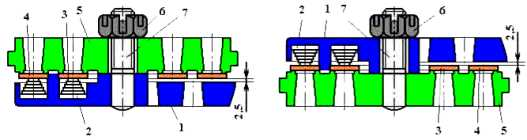 конические ленточные пружины, 5- обоймы (упоры), 6- корончатые гайки, 7- шпильки
