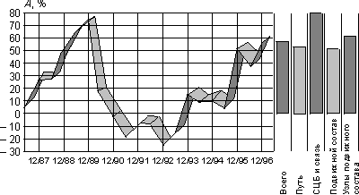Тема: [ЖДМ №10-1998] Закупки на железных дорогах ВеликобританииЗакупки на железных дорогах Великобритании В 1992 - 1997 гг. крупных инвестиций на железных дорогах Великобритании не было. Начало этому положило решение о приватизации железных дорог. Ситуацию обострили последствия экономического спада. Однако в 1997 г. появились основания судить об изменении тенденции в сторону роста объема закупок железнодорожными компаниями. Основанием служат данные опроса входящих в Ассоциацию железнодорожной промышленности (RIA) более 80 компаний, включая несколько недавно приватизированных, охватившего все отрасли системы материально-технического обеспечения железных дорог Великобритании. ![]() Рис. 1. Результаты опроса членов Ассоциации железнодорожной промышленности (RIA): А - доля, %, компаний, более оптимистично оценивающих перспективы по всем секторам отрасли по состоянию на декабрь 1996 г. в сравнении с предыдущим годом Результаты опроса (рис. 1) показывают преобладание оптимистических оценок тенденций роста производства во всех секторах железнодорожной промышленности. Рис. 2 отражает оценки применительно к внутреннему рынку Великобритании, где депрессия носила особо выраженный характер. ![]() Рис. 2. Результаты опроса членов RIA: В - доля, %, компаний, более оптимистично оценивающих перспективы внутреннего рынка Великобритании по состоянию на декабрь 1996 г. в сравнении с предыдущим годом Однако эти оптимистические оценки относительны, фактически поставщики железнодорожного оборудования отмечали, что уровень заказов ниже нормального (рис. 3) и производственные мощности загружены на 65 %. Рис. 3. Оценки портфеля заказов: С - доля, %, компаний, оценивающих уровень заказов на внутреннем рынке как неудовлетворительный Подвижной состав Использование производственных мощностей по выпуску подвижного состава оставалось на уровне 44 %. До приватизации Британские железные дороги эксплуатировали около 12 тыс. пассажирских вагонов, следовательно, если исходить из максимального срока службы вагона 40 лет, то только для поддержания парка в рабочем состоянии ежегодно железнодорожная промышленность должна была поставлять не менее 300 новых вагонов. В 1988 - 1993 гг. (рис. 4) BR опережали этот минимальный уровень. ![]() Рис. 4. Объем заказов подвижного состава со стороны BR или пассажирских компаний-операторов в 1988 - 1996 гг. Однако в 1994 - 1995 гг. не получено ни одного вагона. После перерыва в 1996 г. компания Chiltern Railways первой из владельцев франшиз на пассажирские перевозки заказала четыре трехвагонных дизель-поезда. Обязательства новых пассажирских компаний составляют рынок заказов емкостью до 2000 новых пассажирских вагонов в расчете на 7 лет. Грузовые компании также планировали увеличить парк вагонов. Вместе с тем эти прогнозы характеризуют только возвращение к уровню 1988 - 1993 гг. Реализация этих программ даже не снизит среднего возраста подвижного состава. Условия франшиз пассажирских компаний не стимулируют роста перевозок, хотя все операторы строили бизнес-планы на перспективах увеличения пассажиропотоков. С другой стороны, в случае роста пассажиропотока компании будут вынуждены заменять старый подвижной состав. Без роста перевозок железнодорожной промышленности грозят в конечном итоге стагнация и финансовые проблемы. Инфраструктура В преддверии приватизации администрац
