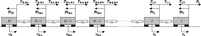Тема: [ЖДМ №10-1998] Система программ TRAIN для моделирования продольной динамики поездаСистема программ TRAIN для моделирования продольной динамики поезда Экстремальные динамические продольные силы в поездах, особенно длинносоставных, способны вызвать значительные повреждения подвижного состава, груза и пути. Наибольшую опасность они представляют для поездов нового типа, например сверхдлинных (до 700 м), и сцепов из нескольких поездов с локомотивами, которые в местах разветвления линии разделяются на отдельные поезда. Здесь очень велик риск при трогании или в процессе торможения, поскольку возникают повышенные продольные силы в сцепках. Для безопасной эксплуатации необходимы специальные предельные нормы, а также новые методы тяги и торможения. С целью разработки для появляющихся новых поездов названных норм и методов обычно проводят многочисленные испытательные и измерительные поездки. Их проведение, как правило, связано с высокими расходами и требует больших затрат времени на планирование, подготовку персонала и подвижного состава, грузов и участка пути. Программа измерений обязательно должна включать экстремальные режимы, возможные в эксплуатации. Прежде всего речь идет о резком торможении с небольшой скорости. Практика показала, что именно в этом режиме продольные силы особенно велики. Весь комплекс эксплуатационных ситуаций в ходе этих испытаний охватить сложно. Под комплексом эксплуатационных ситуаций следует понимать различные режимы ведения поезда (разгон, выбег или торможение) в изменяющихся топографических условиях (изменение радиуса кривой в плане, выпуклый или вогнутый профиль пути). Использование локомотивов и вагонов разных серий может практиковаться лишь в ограниченном объеме, например для более точного исследования какого-либо неожиданно возникшего явления. Исследование концепций ведения поездов нового типа с учетом всего комплекса эксплуатационных ситуаций значительно упрощается, если для этой цели использовать математическое моделирование на базе специальных программ. Преимущества компьютерного моделирования заключаются в том, что здесь возможно быстрое изменение исходных ситуаций и предельных условий. Это дает возможность изучения нескольких сценариев с несоизмеримо меньшими затратами средств и времени, чем при опытных поездках. Могут быть также исследованы критические ситуации, реализовать которые в условиях опытных поездок было бы опасно. Речь идет о таких ситуациях, как обрыв воздушного рукава или неправильно выбранные момент, способ или продолжительность торможения. Система программ TRAIN Для решения рассмотренных задач Институт путей сообщения, строительства и эксплуатации железных дорог (IVE), Ганновер, разработал программный комплекс TRAIN, состоящий из интегрированных расчетных программ и модуля для интерактивного графического анализа результатов. Программы разработаны на рабочей станции Unix под управлением ОС SUN-Solaris, но могут работать также на платформе Windows NT. Программный продукт TRAIN базируется на математических моделях, с помощью которых можно описать продольную динамику компонентов, образующих систему "поезд". Модель поезда представляет собой сочетание масс и пружин, которое позволяет описать процесс движения поезда в виде системы дифференциальных уравнений. Вторая