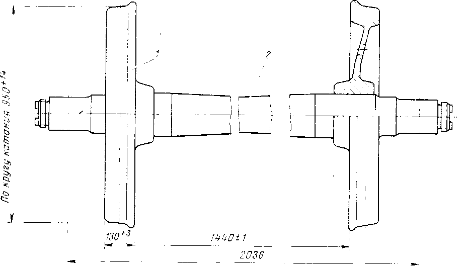 центры, литые из углеродистых сталей 25 ЛИ (левый центр) и 25 ЛП1 (правый центр) повышенного качества. Наружный диаметр обода колесного центра должен быть 900 мм, а ширина — 88 мм. Правый колесный центр имеет фланец для крепления И болтами венца зубчатого колеса.