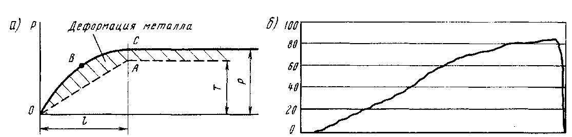 Рис. 25. Запрессовочные теоретическая (а) и действительная (б) диаграммы: