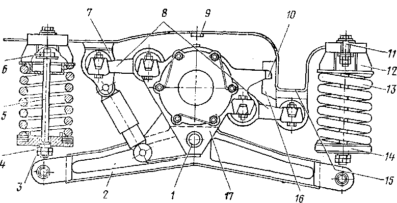 чивает жесткость оуксового рессорного подвешивания. Следовательно, она должна быть минимальной (при возможности конструктивного решения— равной нулю).
