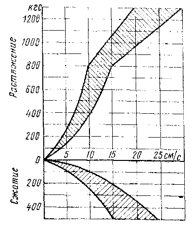 Диаметр каналов и калиброванных отверстий в тарелках 22 и 24, а также их количество подобраны таким образом, что сила сопротивления движению поршня при сжатии в 3 раза меньше силы сопротивления при растяжении гидродемпфера. Таким образом, гидродемпфер имеет разные постоянные для работы на сжатие и растяжение. Такие гидродемпферы называются демпферами с несимметричной характеристикой (рис. 42).