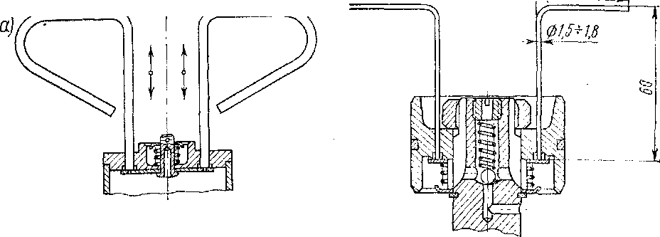 Рис. 44. Устройство для проверки качества работы всасывающего (а) и перепускного (б) клапанов