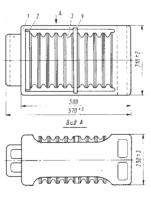 толщина 41,5 мм. Чтобы исключить смещение резинометаллических элементов и соприкосновение их с кромками корпуса при сжатии аппарата, на днище корпуса, нажимной и промежуточных плитах, а также на стальных листах резинометаллических элементов имеются фиксирующие выступы и соответствующие им углубления. Полный ход аппарата при сжатии 70 мм, наибольшее усилие в конце сжатия не превышает 1 МН (100 тс). Масса составляет 116 кг.