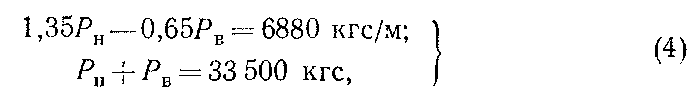 Решая систему (4), найдем Ри = 14 300 кгс; Рв = 19 200 кгс, т. е. нагрузка на внутренние опоры должна быть на 4900 кгс больше, чем на наружные.
