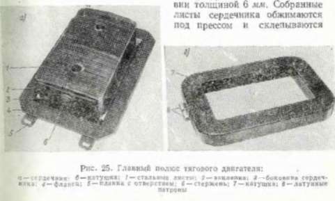 Главный полюс (рис. 25) состоит из сердечника а, катушки б и фланца 4. Сердечник набирают из листовой стали толщиной I ММ и двух крайних стальных боко-