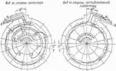 Обмотка якоря. Большие рабочие токи двигателя обусловили конструкцию якоря с петлевой обмоткой, позволяющей за счет увеличенного количества параллельных ветвей обмотки нагружать машину большим током.