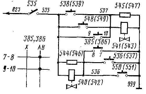 Рис. 81. Схема цепей управления электропневматическими вентилями звуковых сигналов электровоза ЧС4